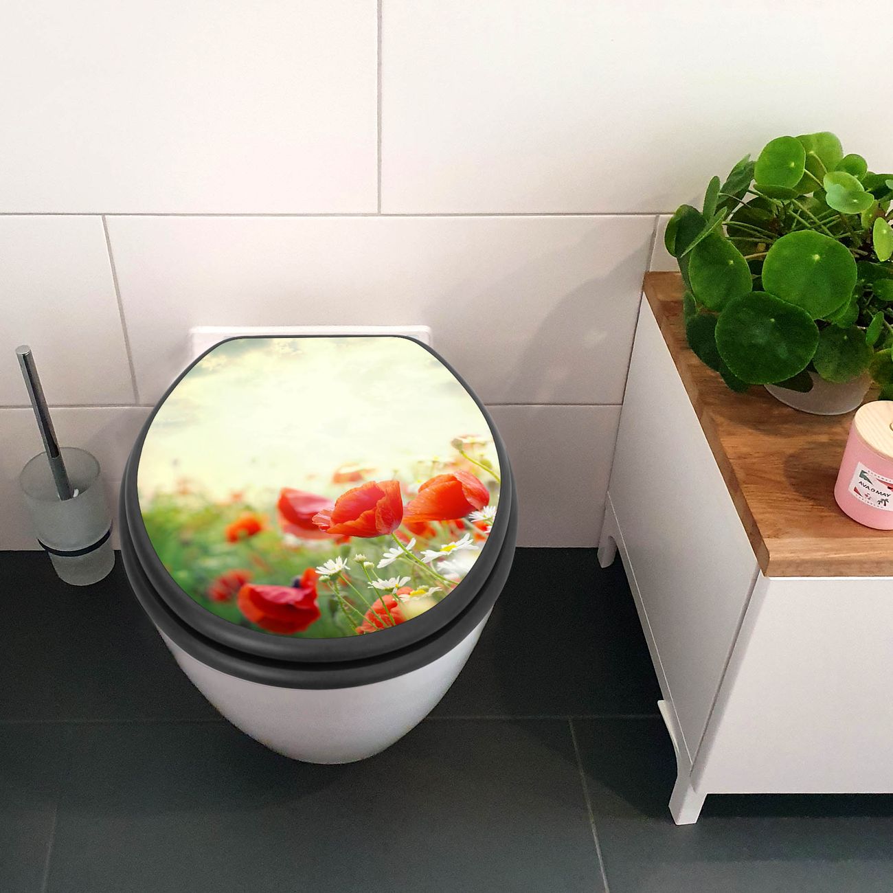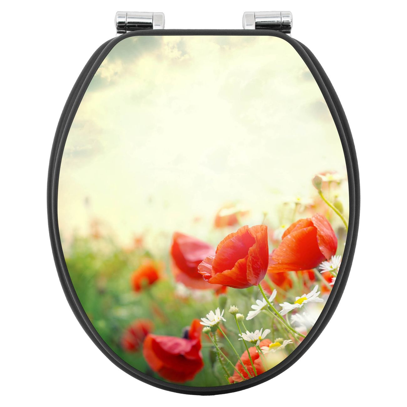 WC Sitz Anthrazit mit Absenkautomatik Motiv Kamille Und Mohn