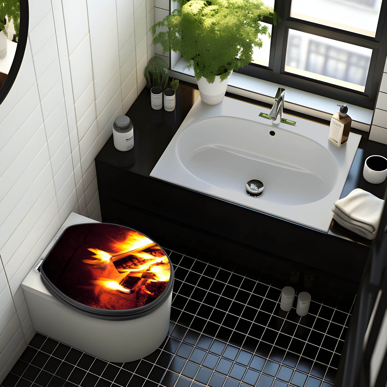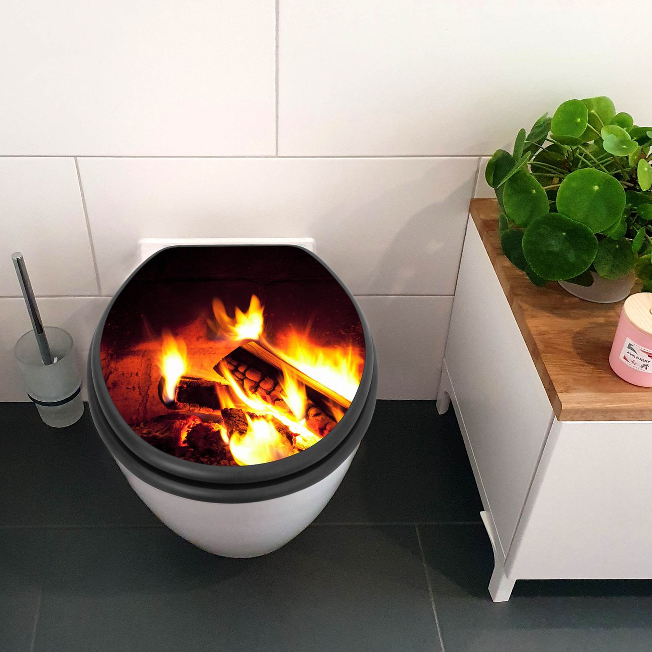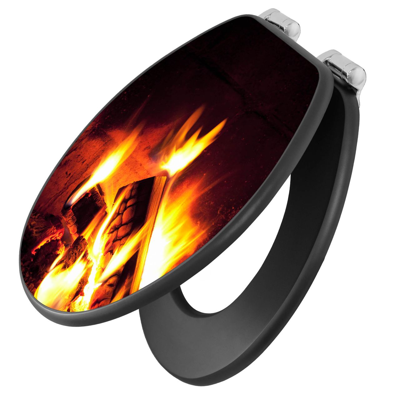 WC Sitz Anthrazit mit Absenkautomatik Motiv Kaminfeuer
