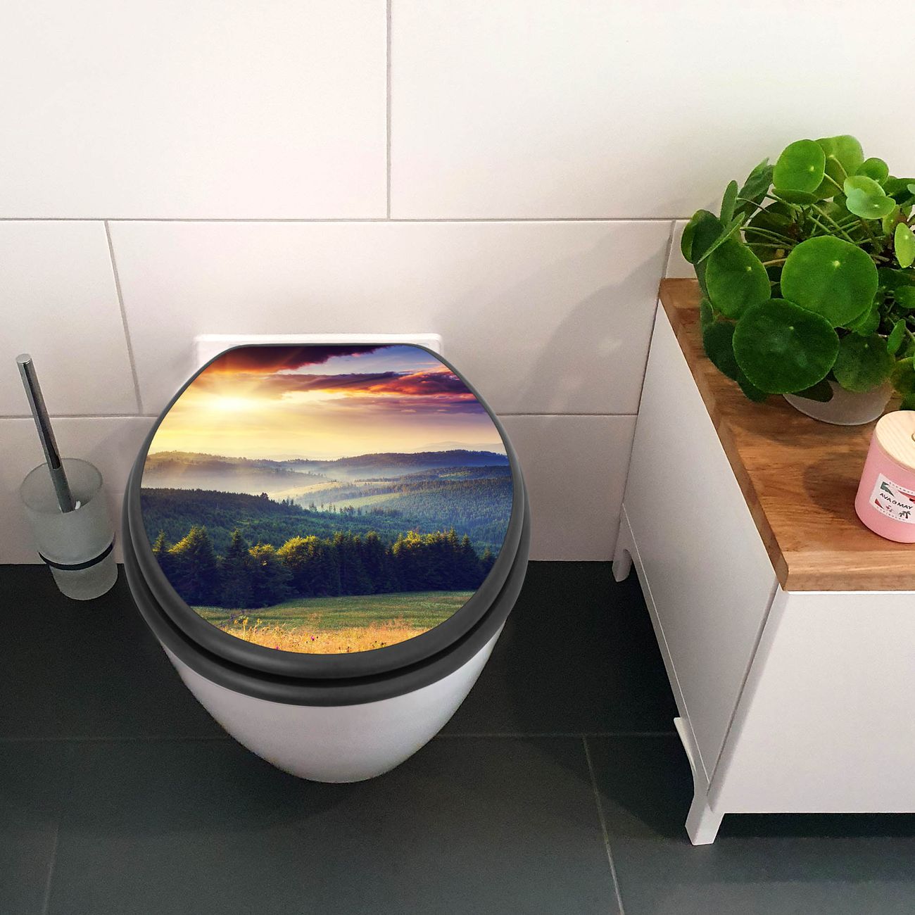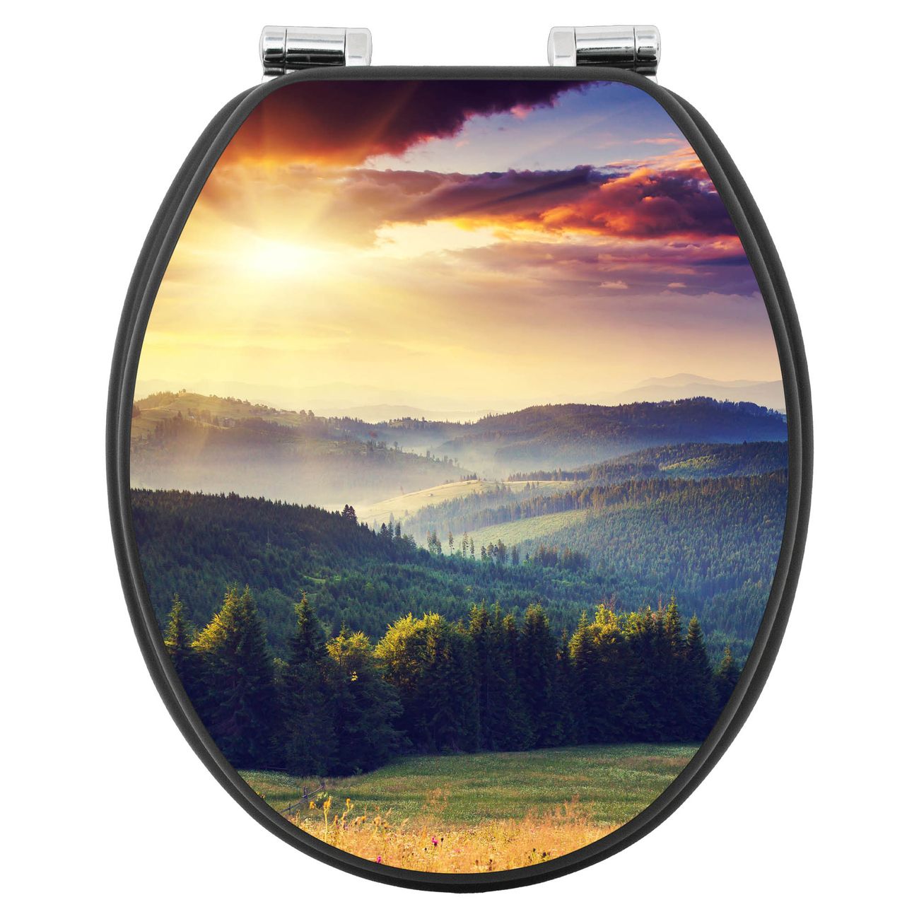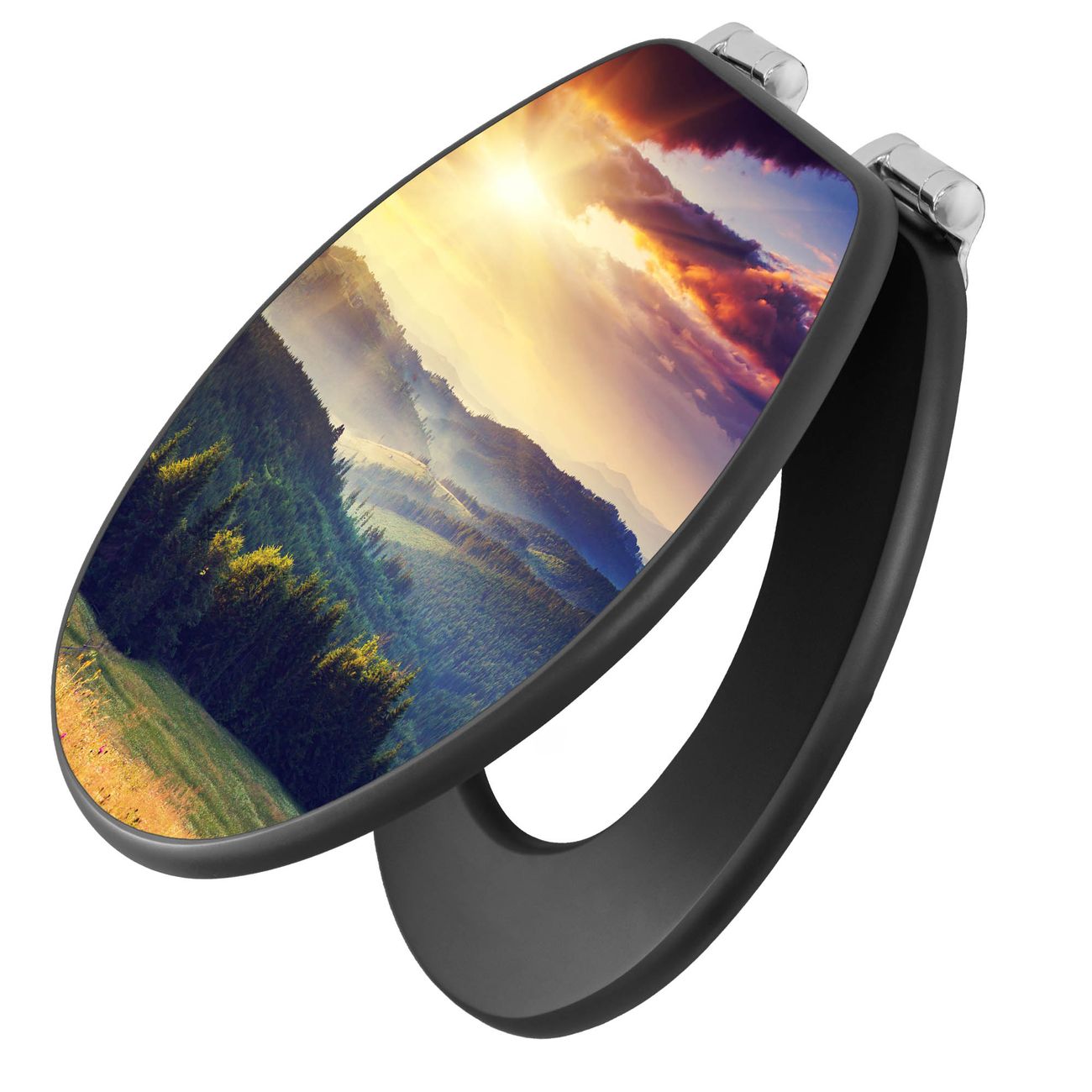 WC Sitz Anthrazit mit Absenkautomatik Motiv Karpaten Sonnenuntergang