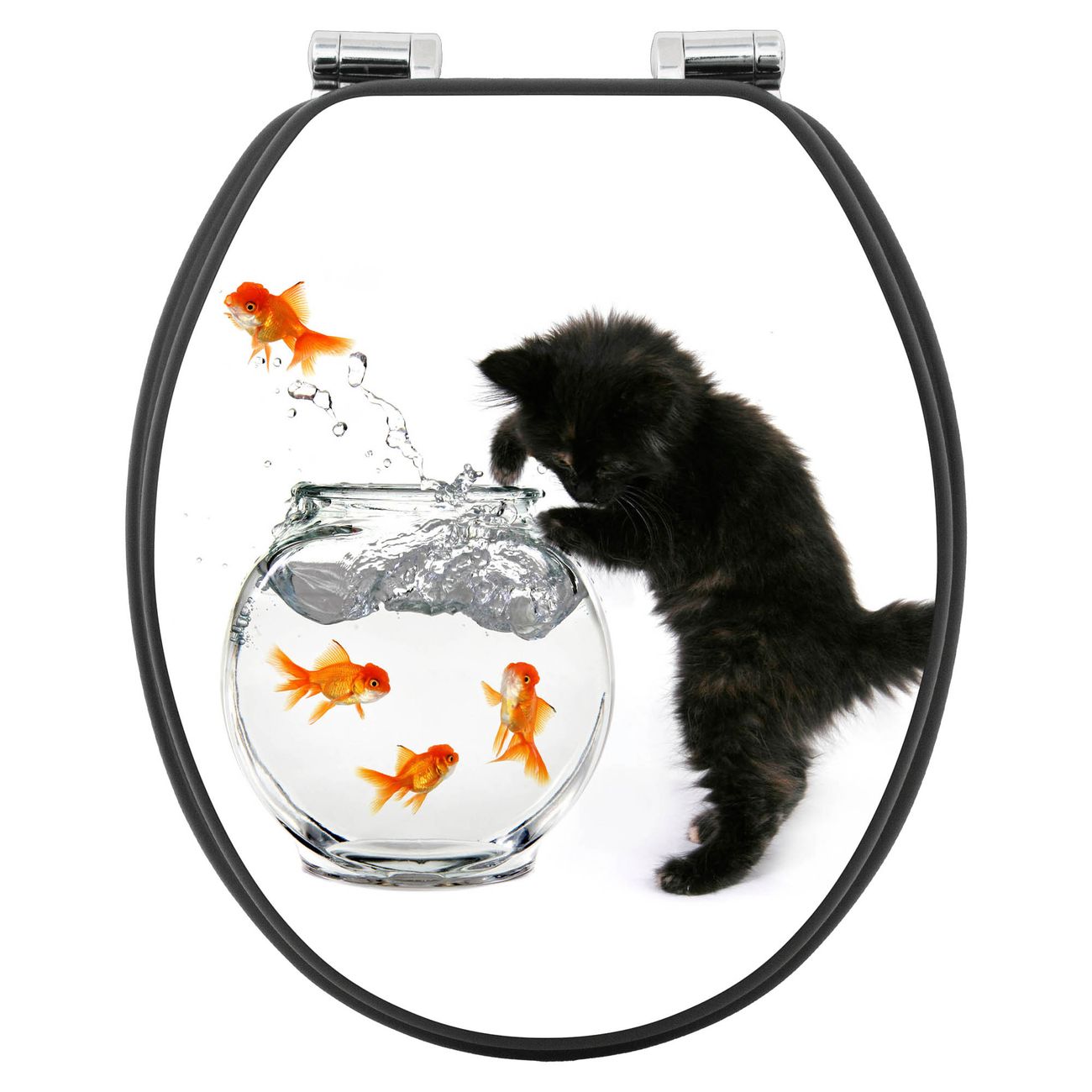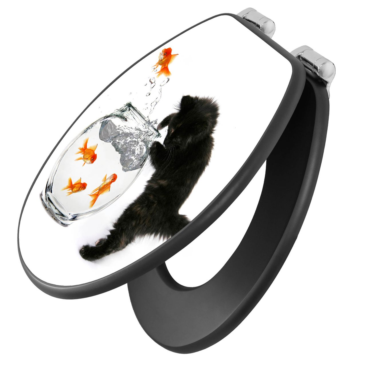 WC Sitz Anthrazit mit Absenkautomatik Motiv Katze Und Fisch
