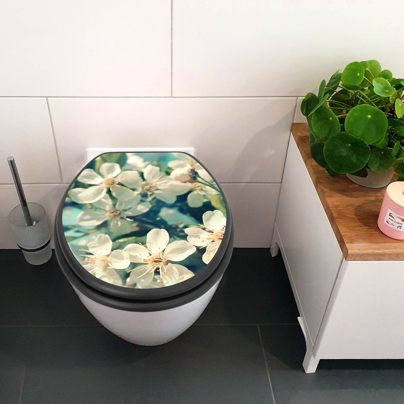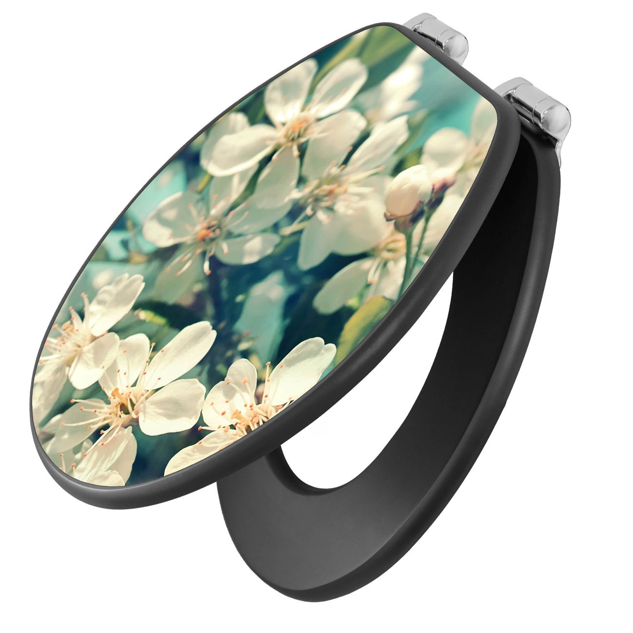 WC Sitz Anthrazit mit Absenkautomatik Motiv Kirschblüten 2