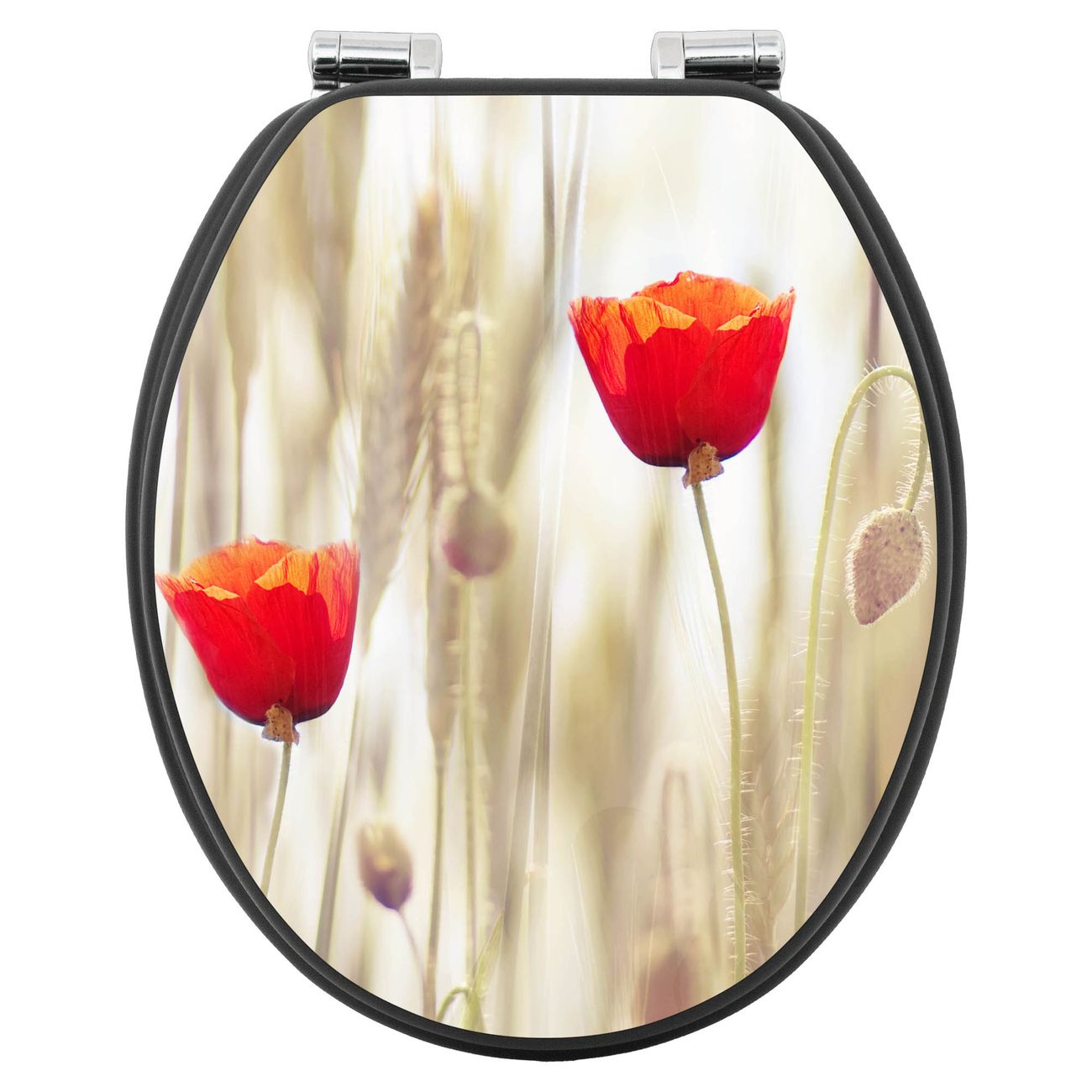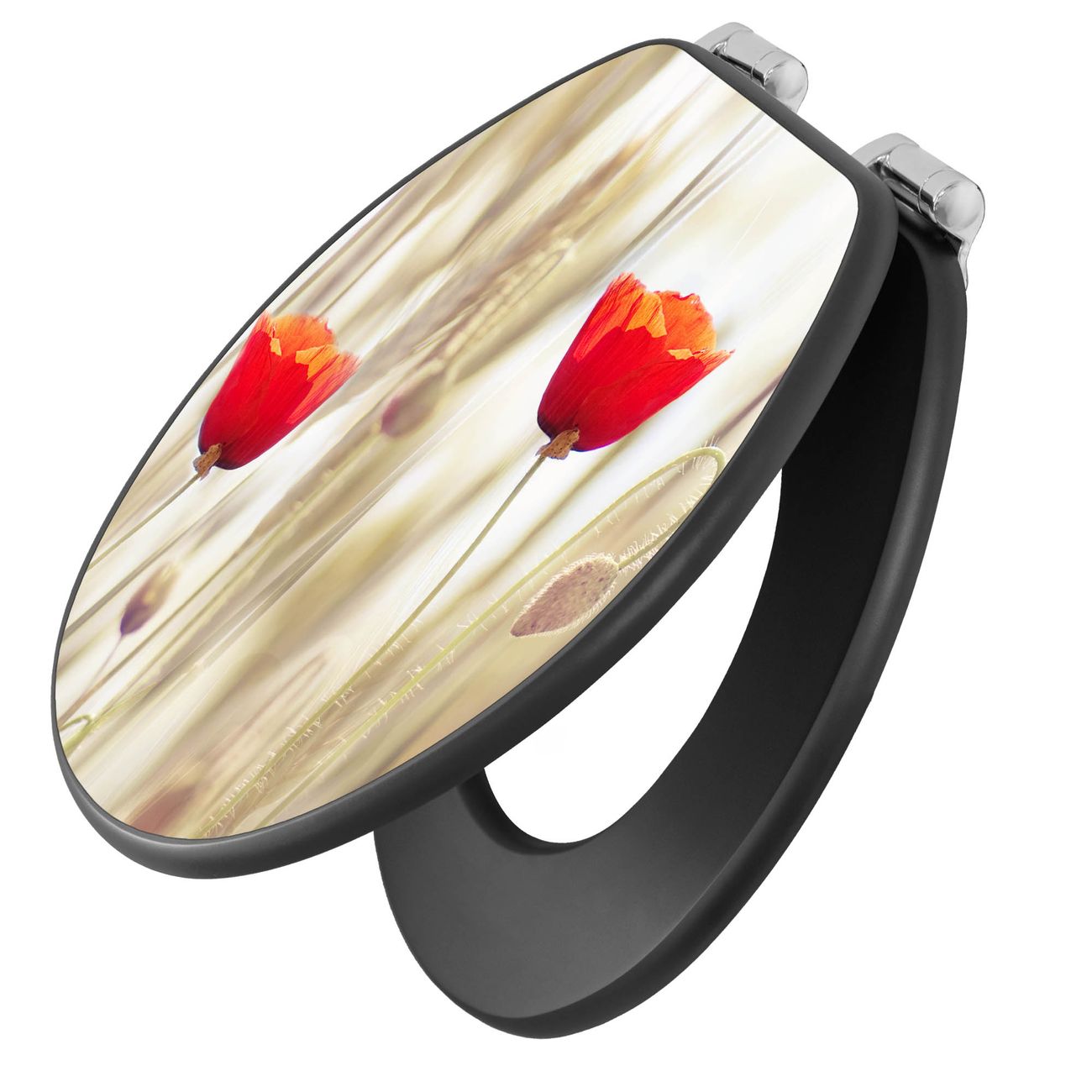 WC Sitz Anthrazit mit Absenkautomatik Motiv Klatschmohn
