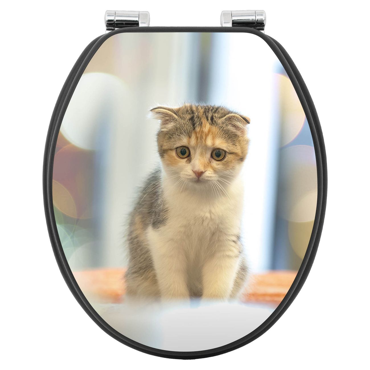 WC Sitz Anthrazit mit Absenkautomatik Motiv Kleine Katze