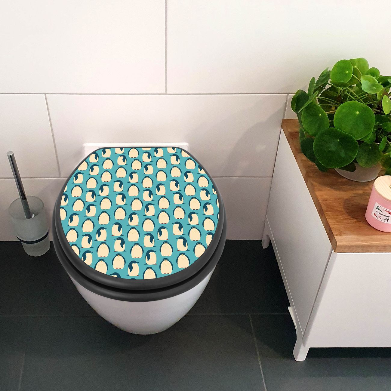 WC Sitz Anthrazit mit Absenkautomatik Motiv Königspinguine
