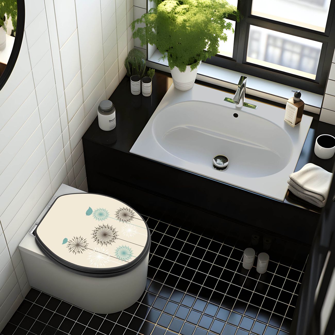 WC Sitz Anthrazit mit Absenkautomatik Motiv Kugelfontänen