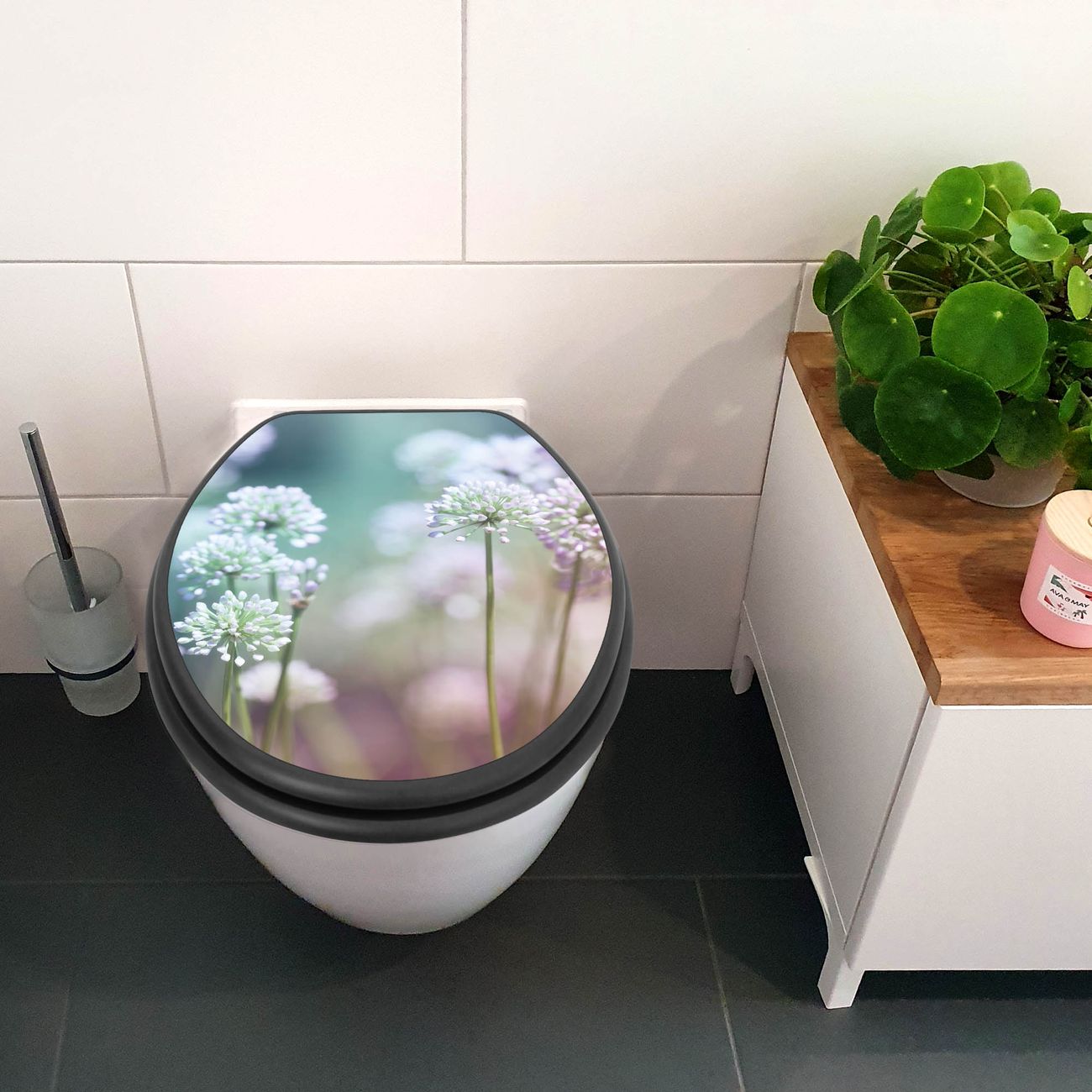 WC Sitz Anthrazit mit Absenkautomatik Motiv Lauchblüte