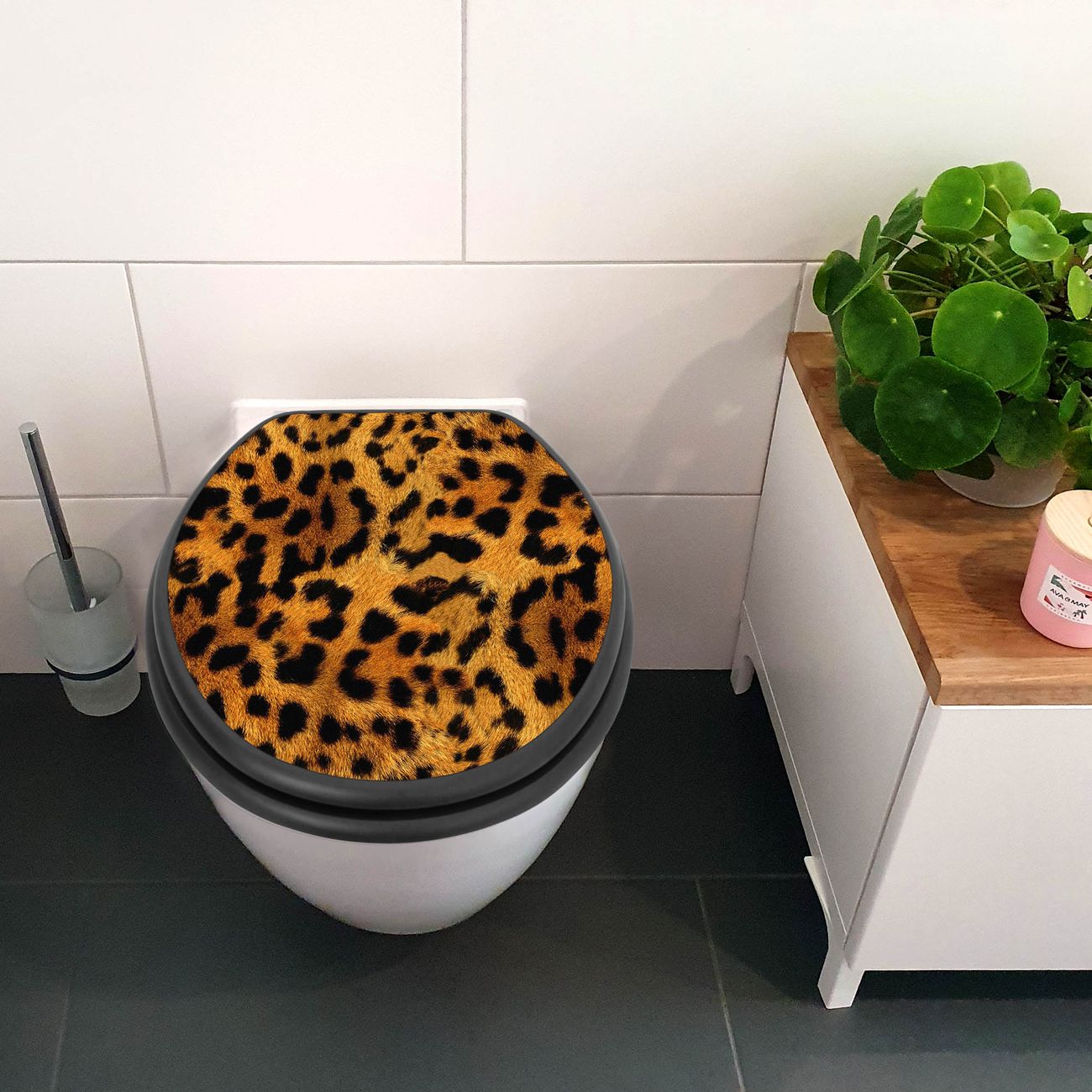 WC Sitz Anthrazit mit Absenkautomatik Motiv Leopard