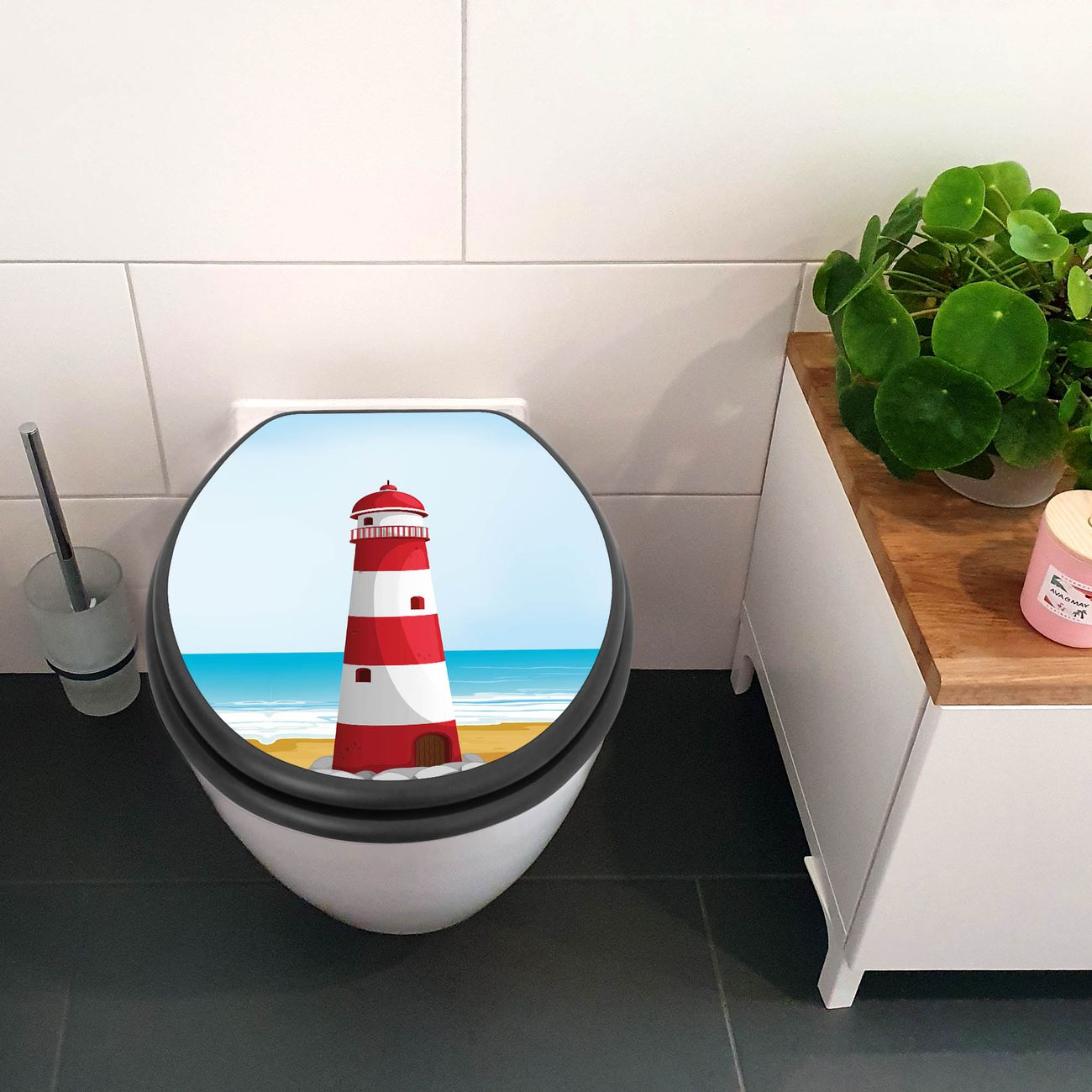WC Sitz Anthrazit mit Absenkautomatik Motiv Leuchtturm Illustration