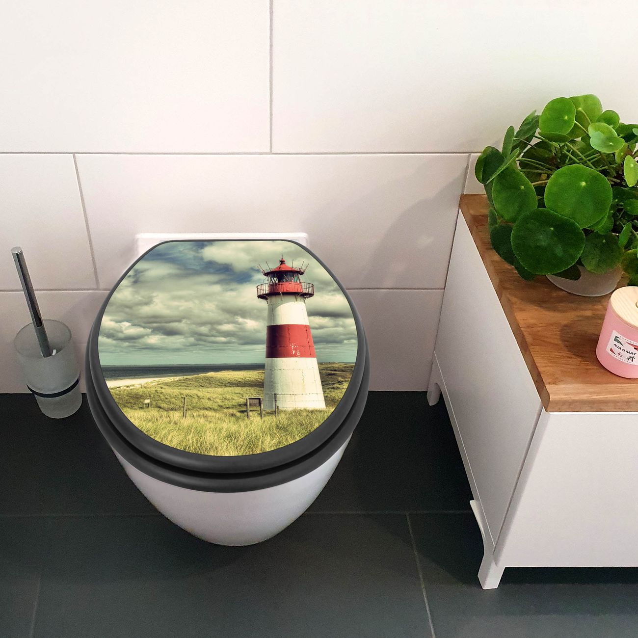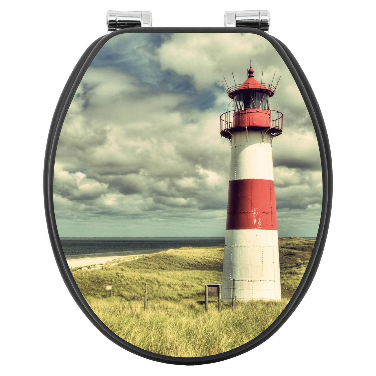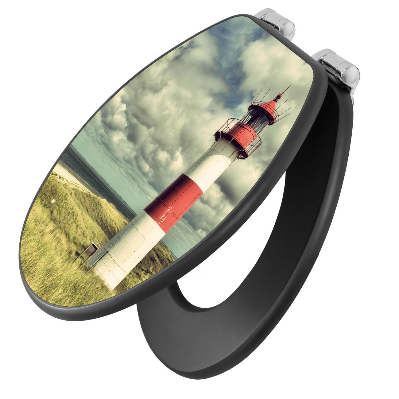 WC Sitz Anthrazit mit Absenkautomatik Motiv Leuchtturm Sylt