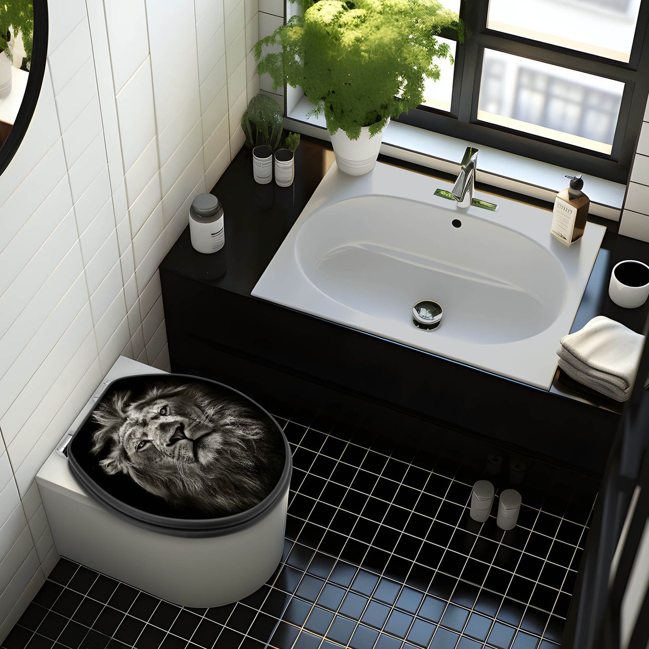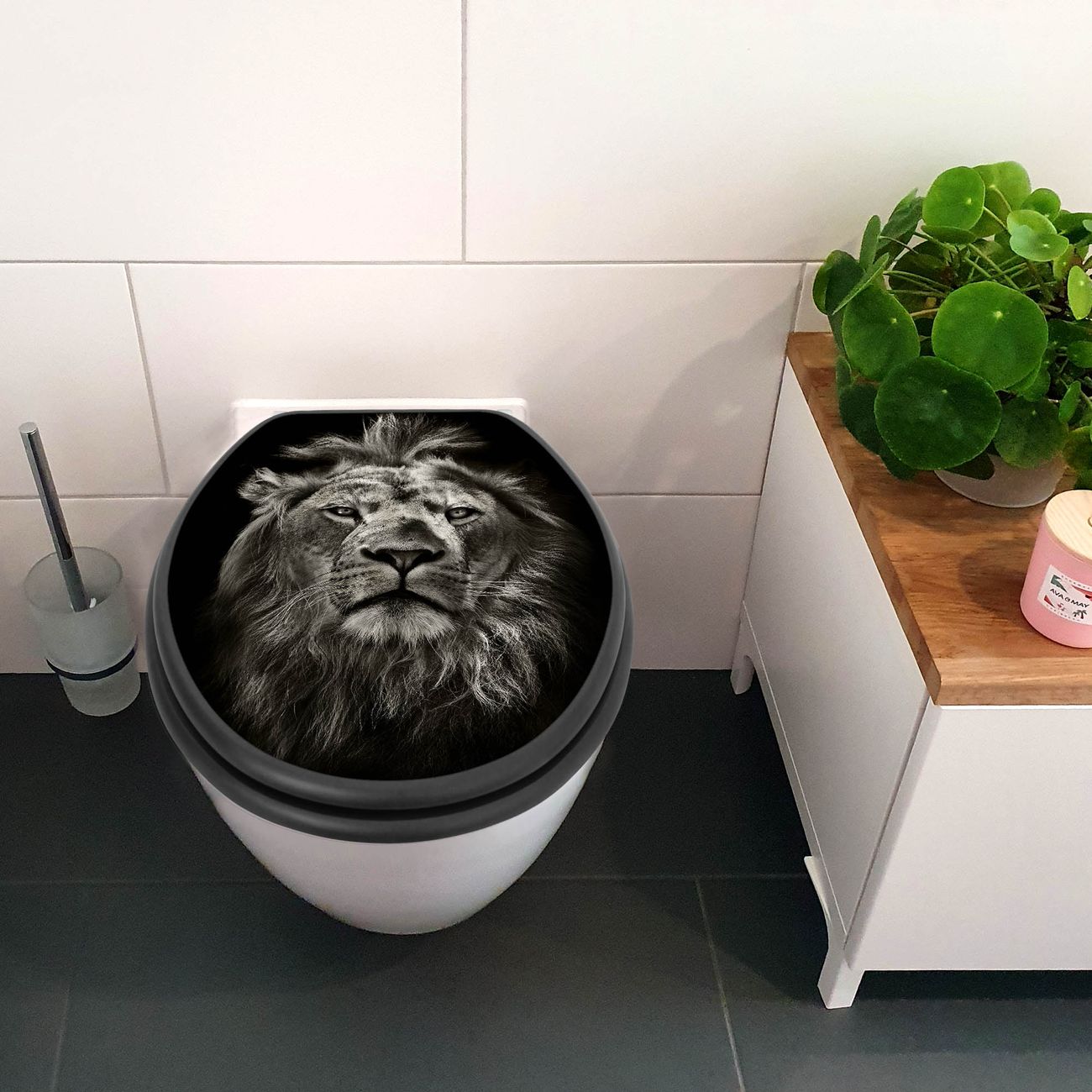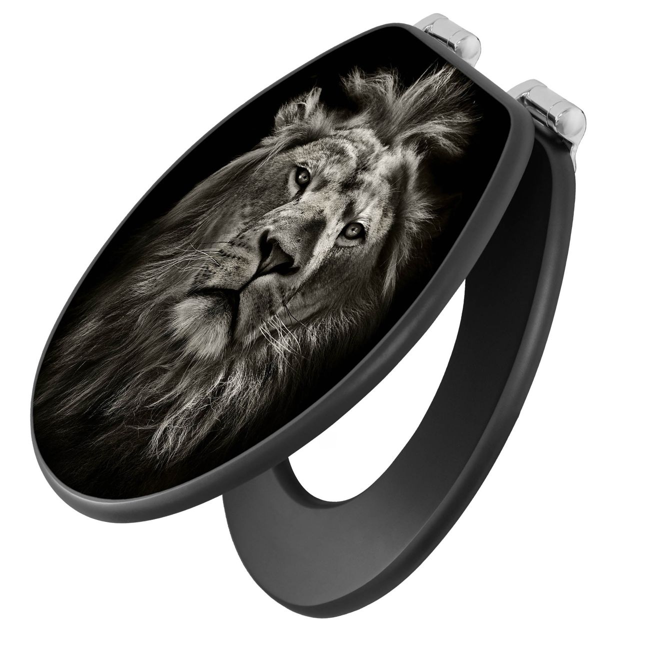 WC Sitz Anthrazit mit Absenkautomatik Motiv Löwe Porträt