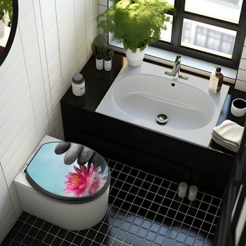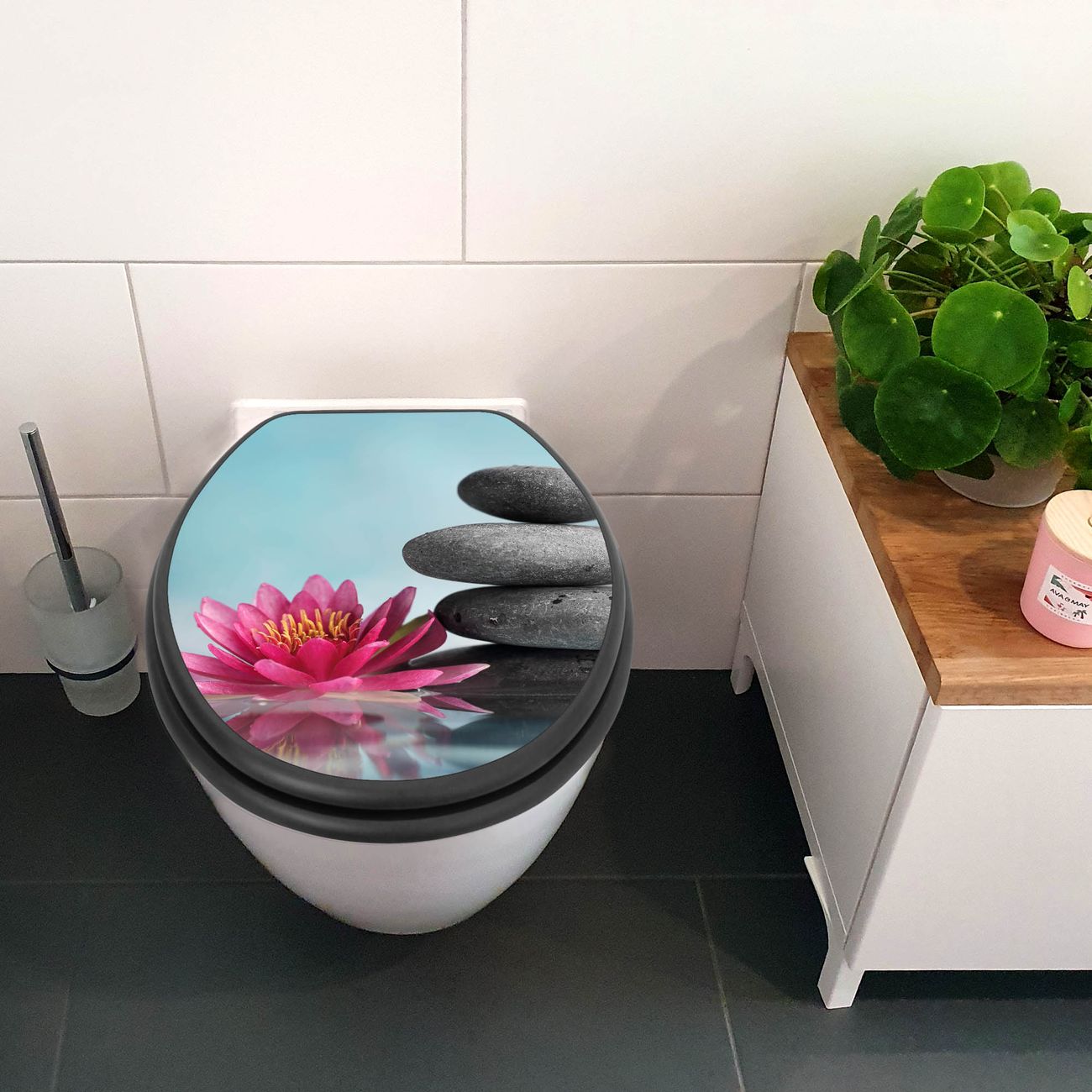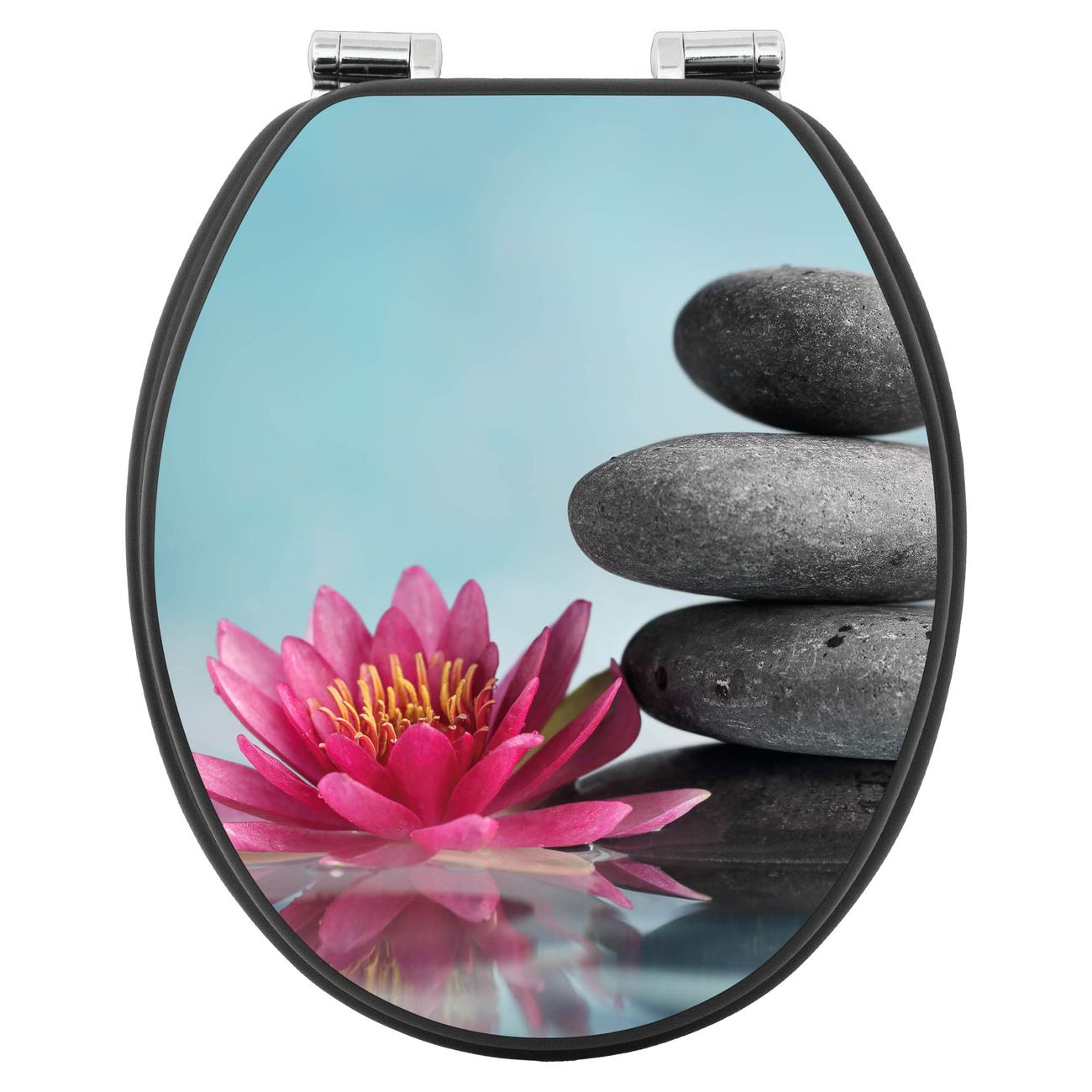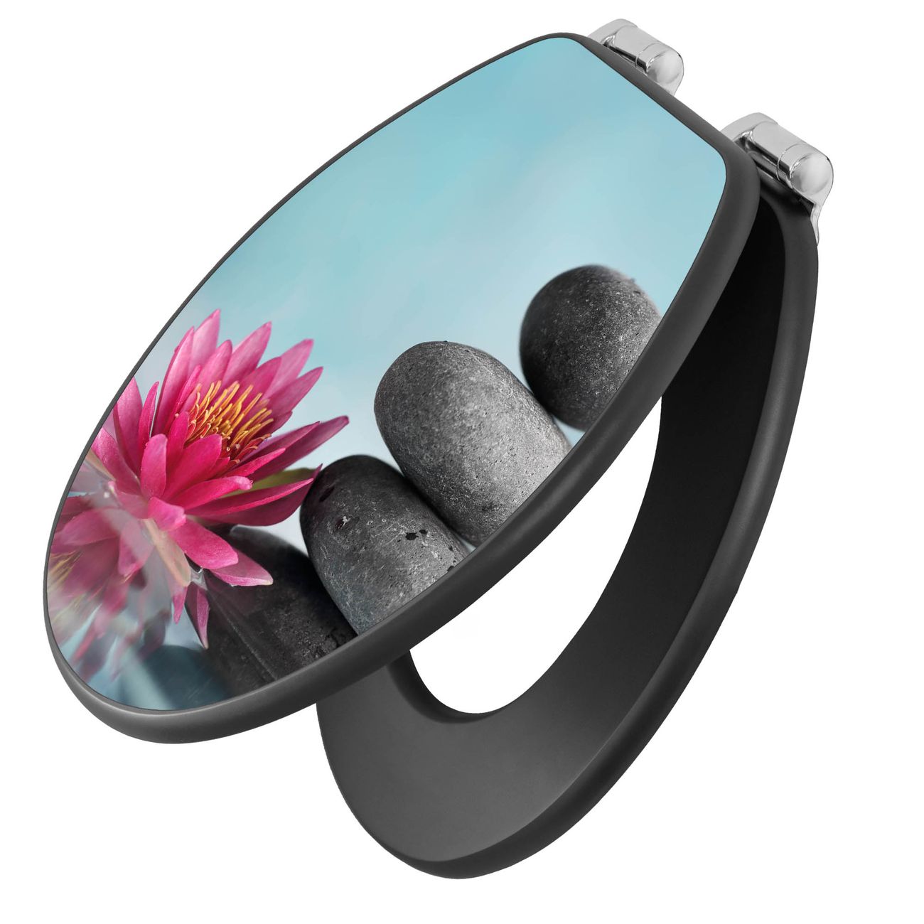WC Sitz Anthrazit mit Absenkautomatik Motiv Lotus Und Steine