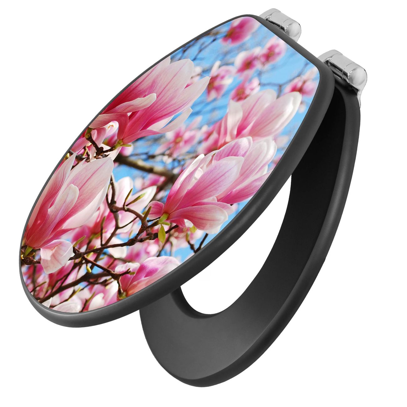 WC Sitz Anthrazit mit Absenkautomatik Motiv Magnolienbaum