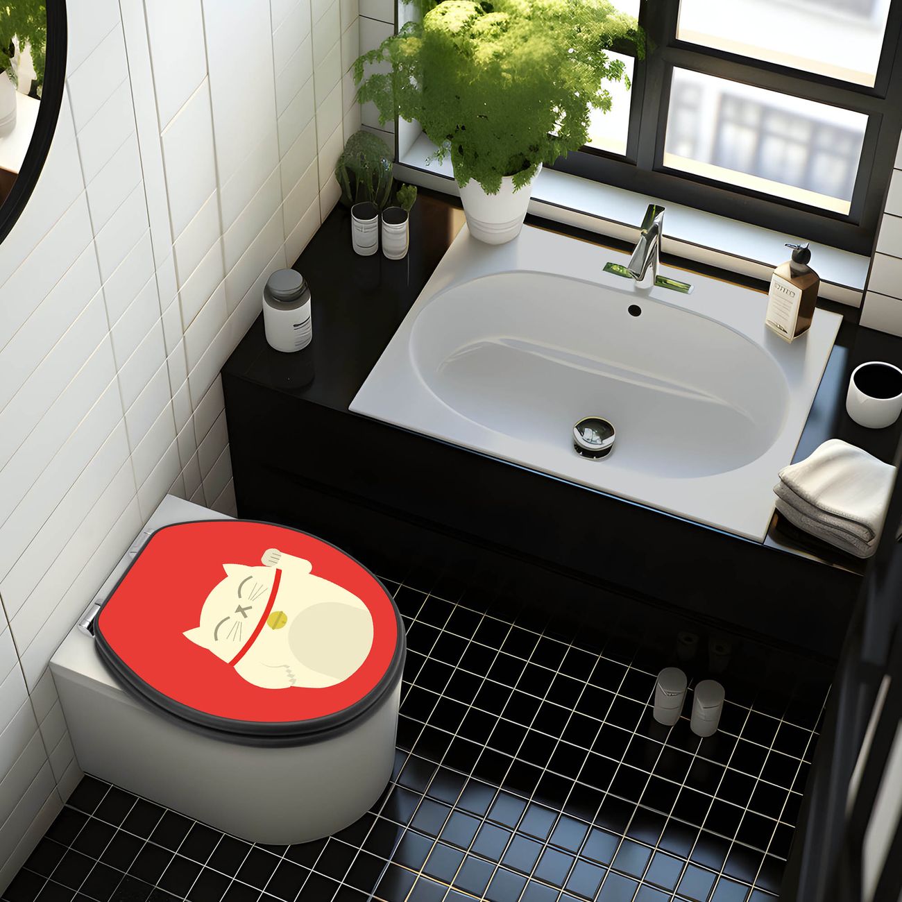 WC Sitz Anthrazit mit Absenkautomatik Motiv Manekineko