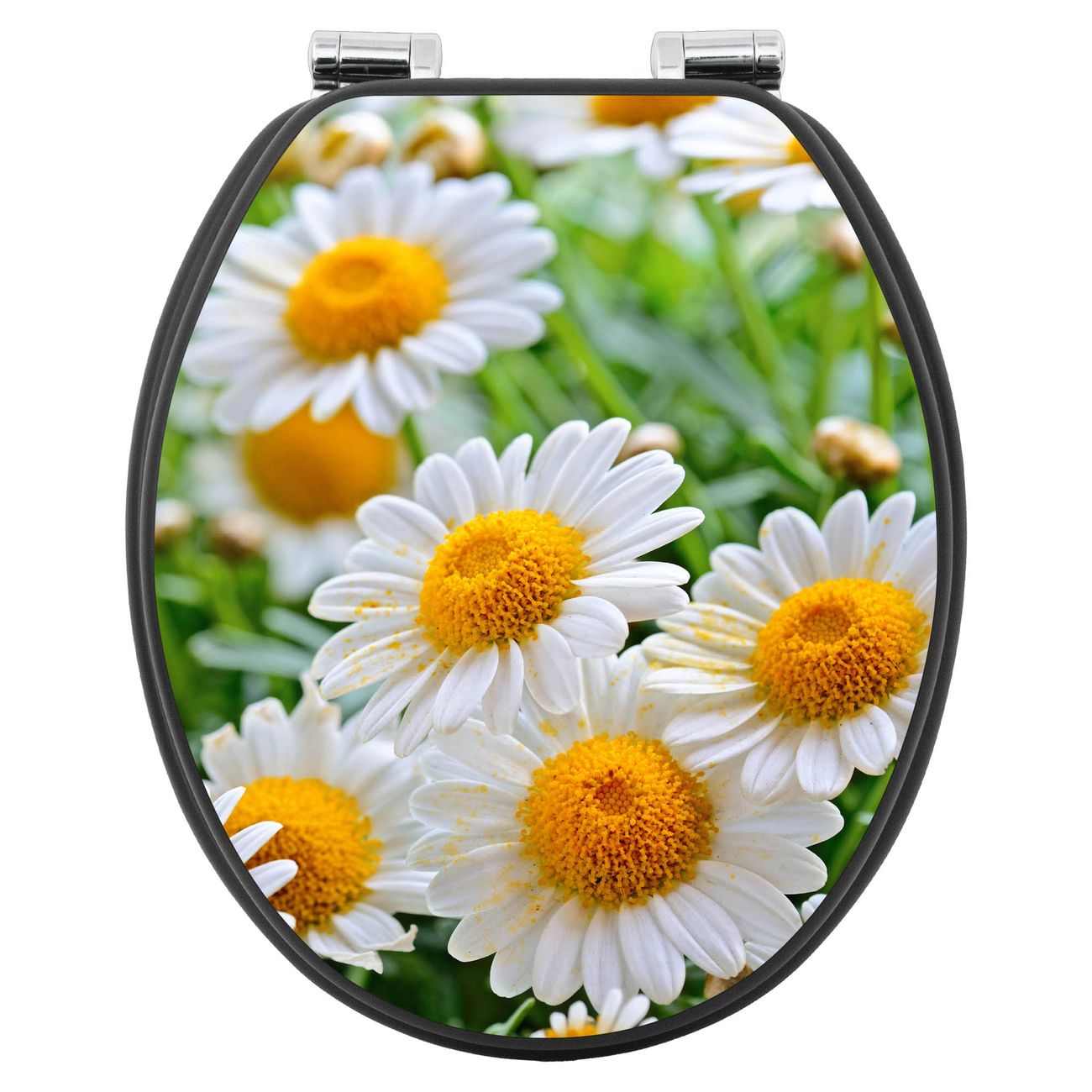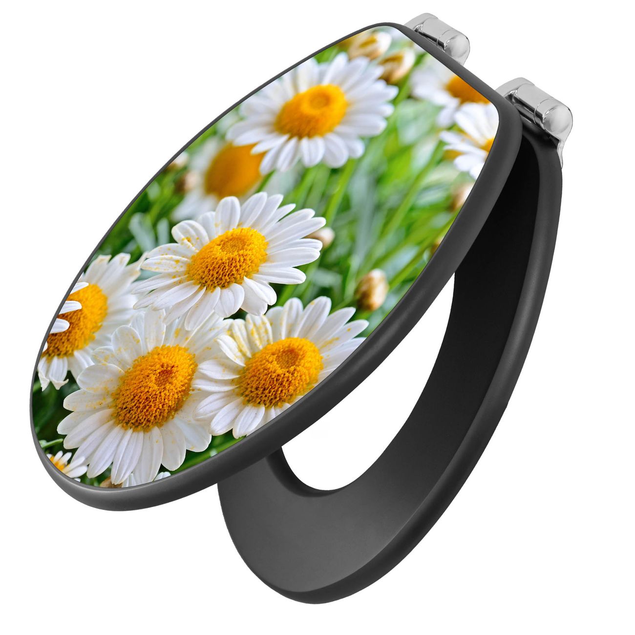 WC Sitz Anthrazit mit Absenkautomatik Motiv Margeriten Illustration