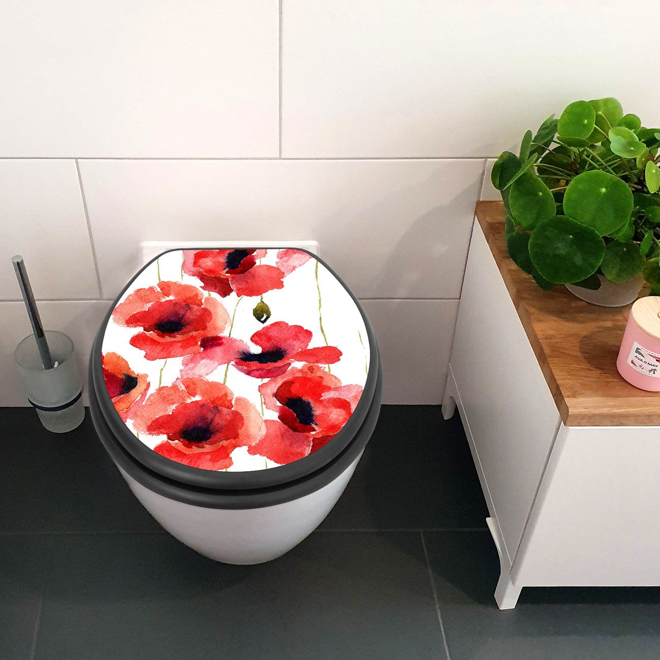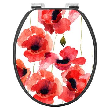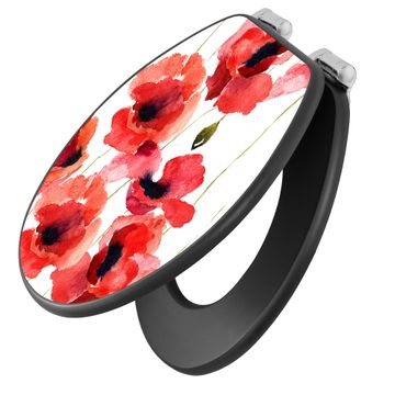 WC Sitz Anthrazit mit Absenkautomatik Motiv Mohn Aquarell