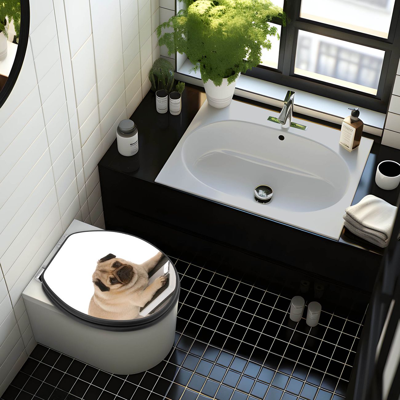 WC Sitz Anthrazit mit Absenkautomatik Motiv Mops