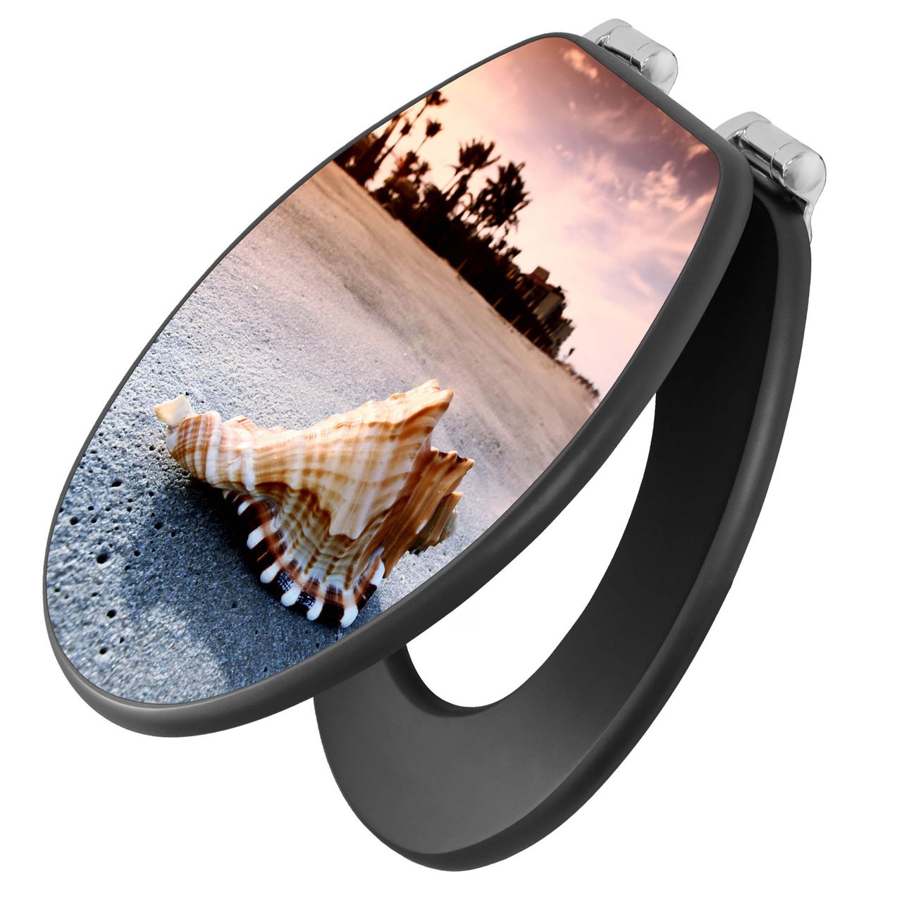 WC Sitz Anthrazit mit Absenkautomatik Motiv Muscheln