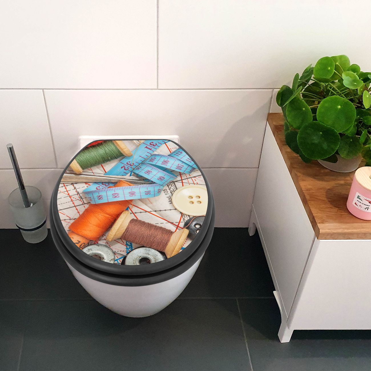 WC Sitz Anthrazit mit Absenkautomatik Motiv Nähen
