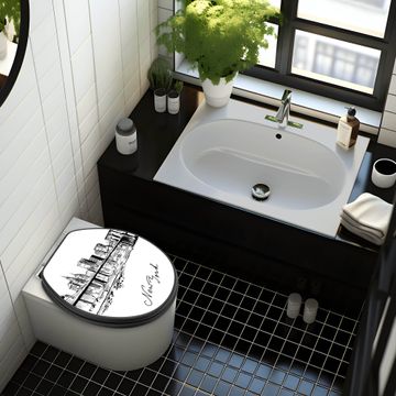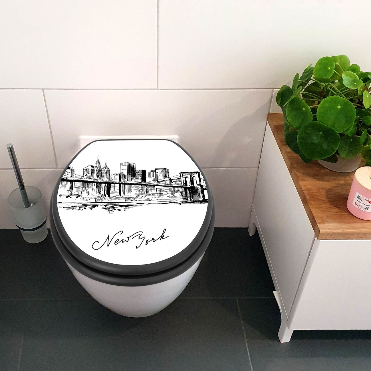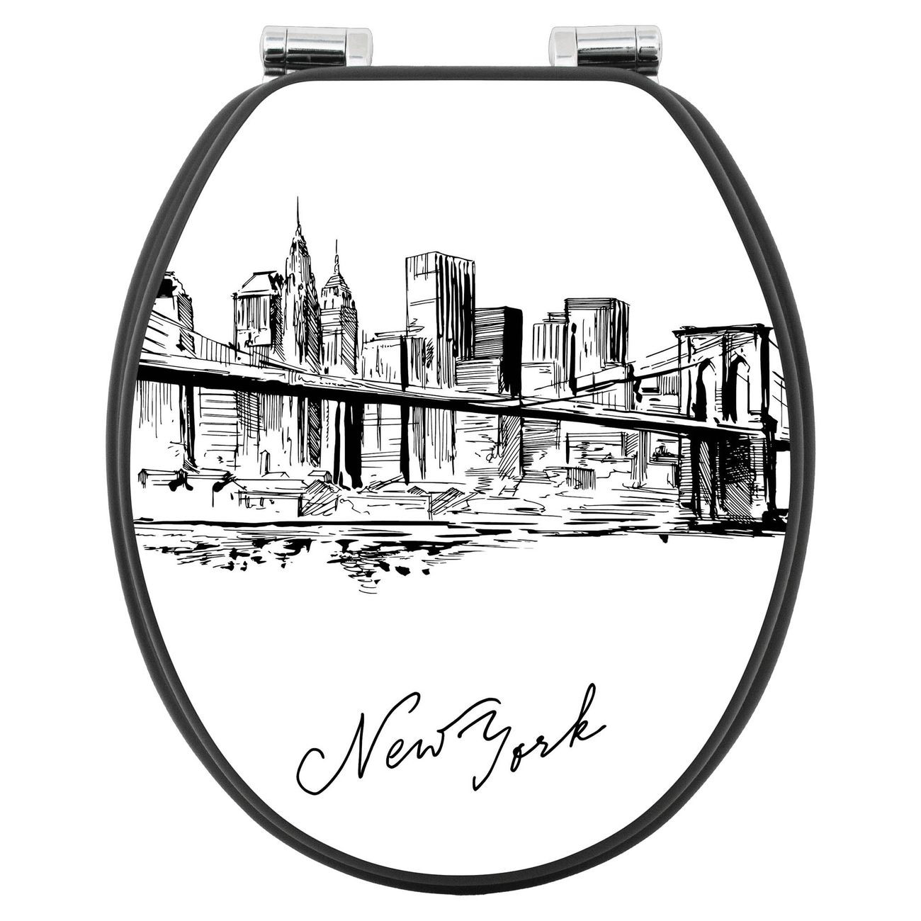 WC Sitz Anthrazit mit Absenkautomatik Motiv New York Skizze