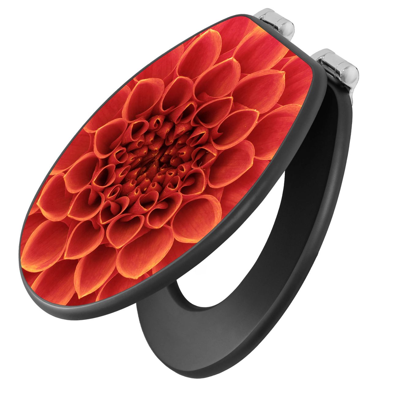 WC Sitz Anthrazit mit Absenkautomatik Motiv Orange Chrysantheme