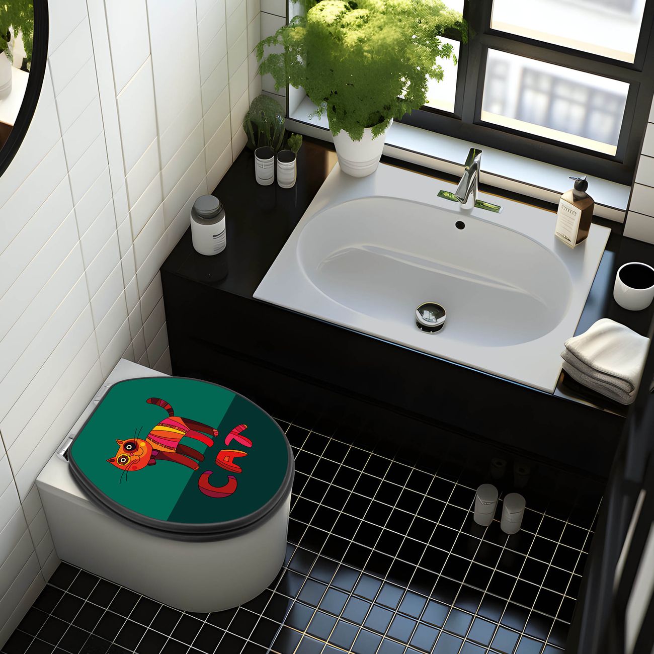 WC Sitz Anthrazit mit Absenkautomatik Motiv Orange Katze