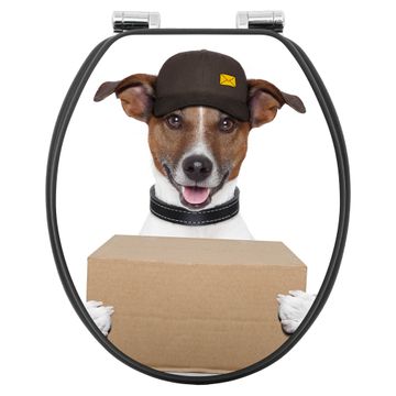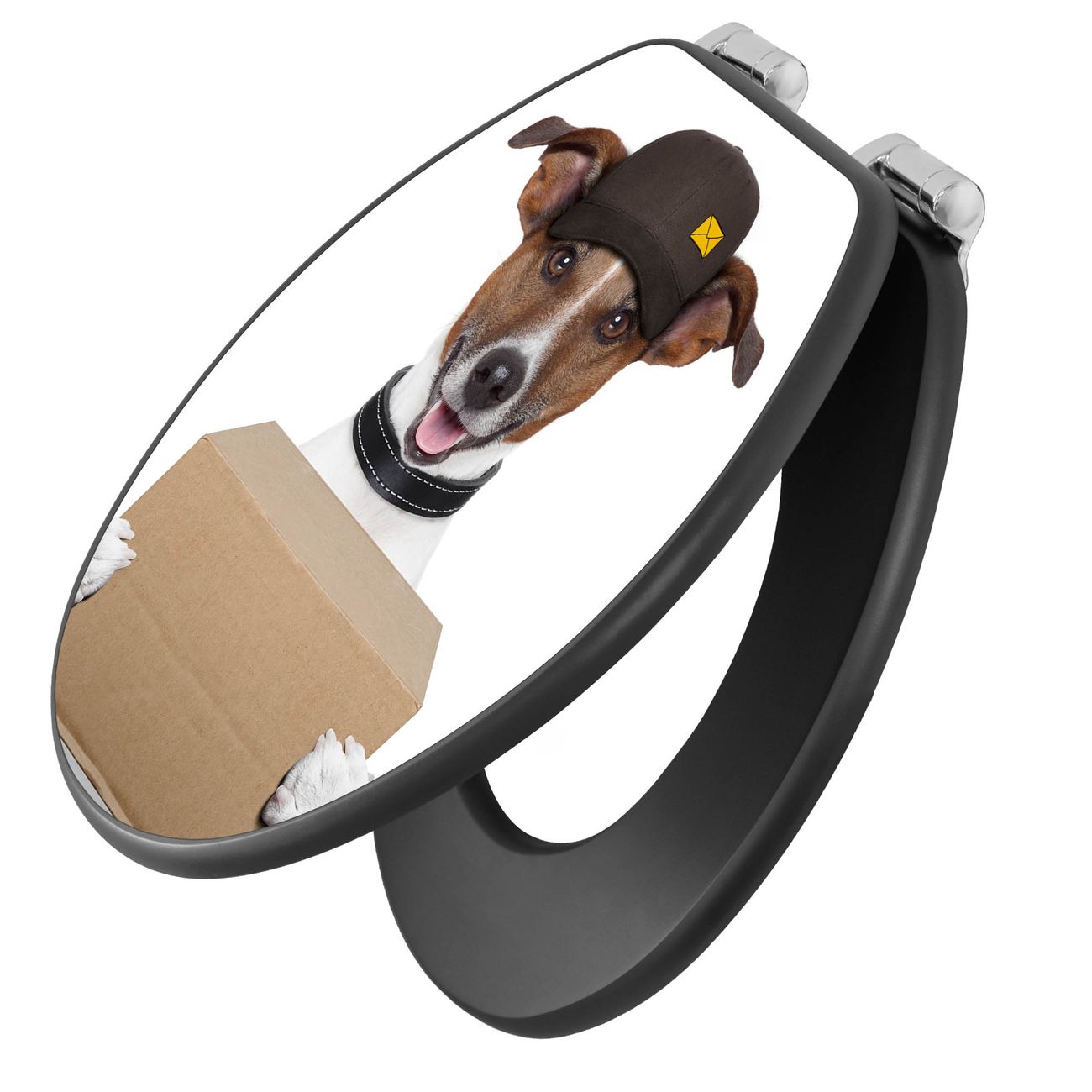 WC Sitz Anthrazit mit Absenkautomatik Motiv Paketdienst Jack Russel