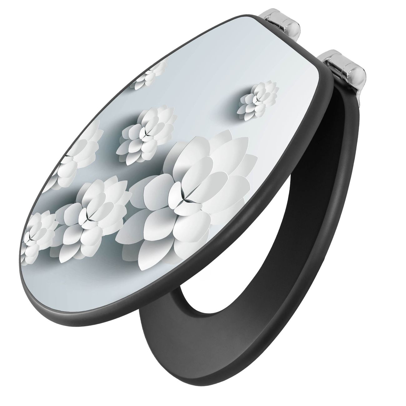 WC Sitz Anthrazit mit Absenkautomatik Motiv Papier Lotus