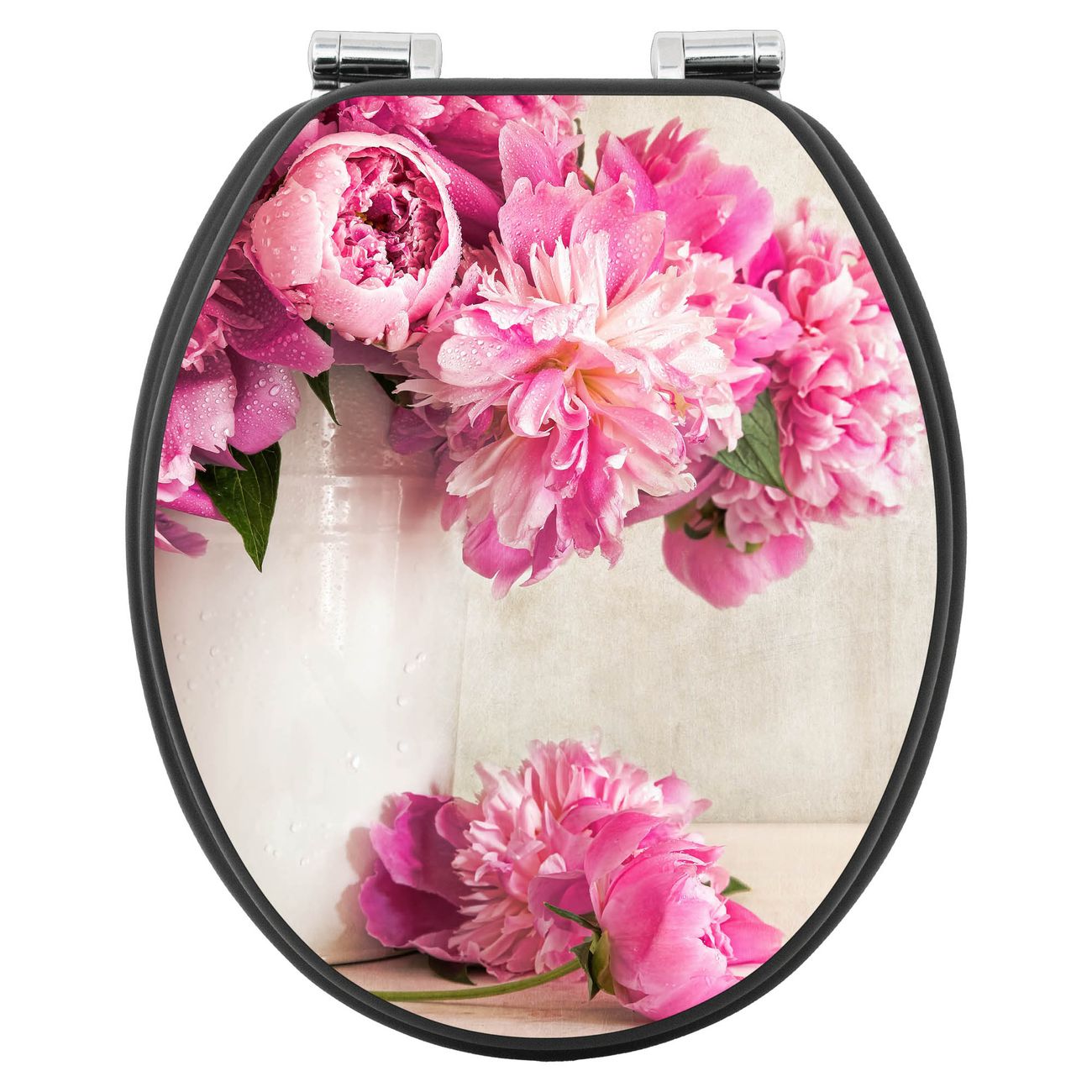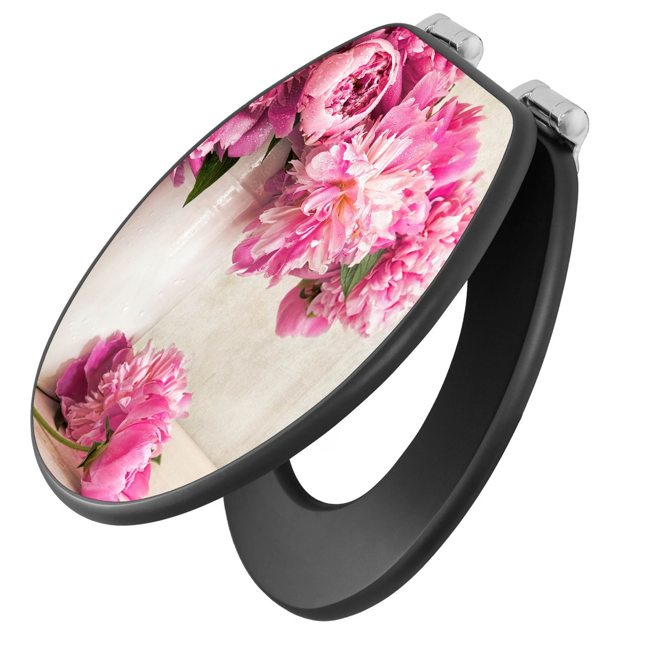 WC Sitz Anthrazit mit Absenkautomatik Motiv Pfingstrose