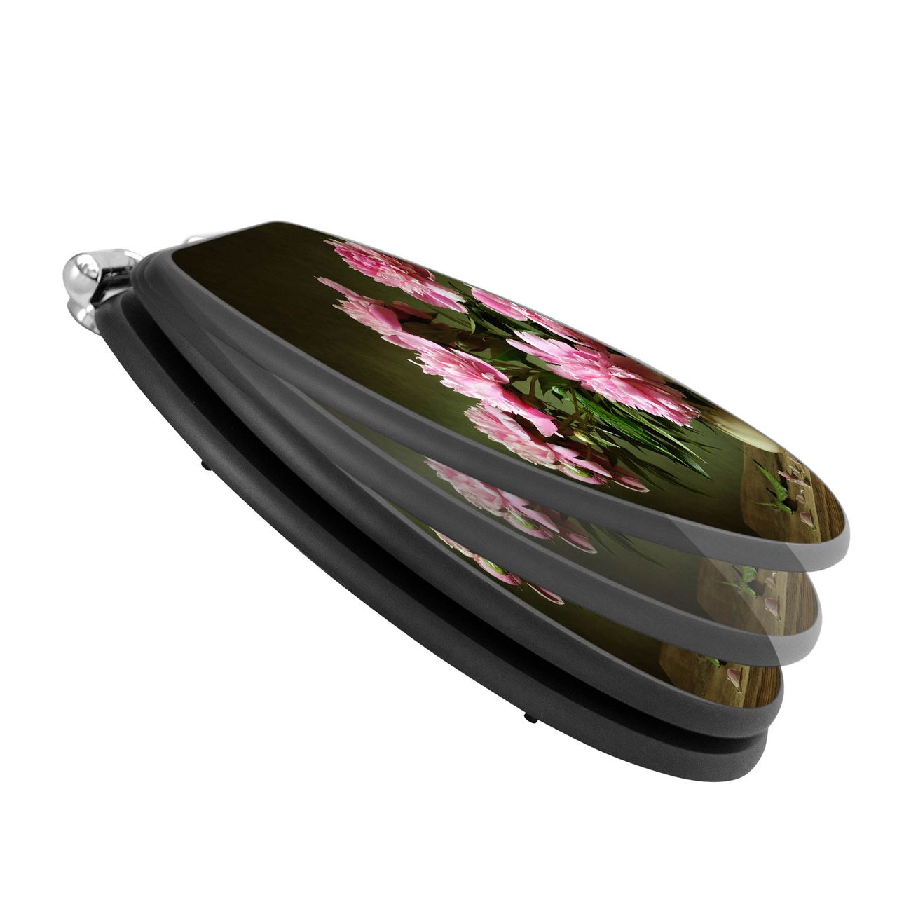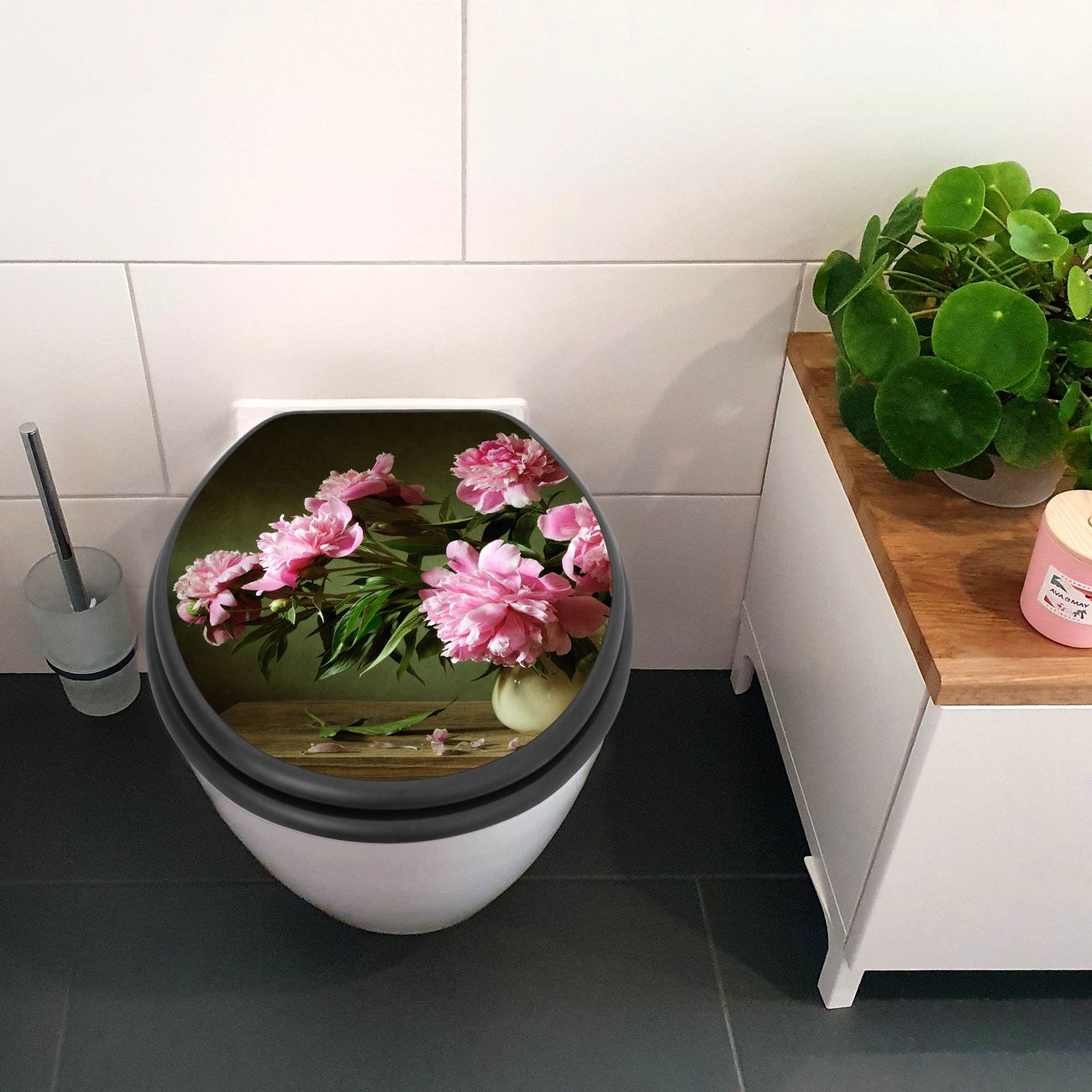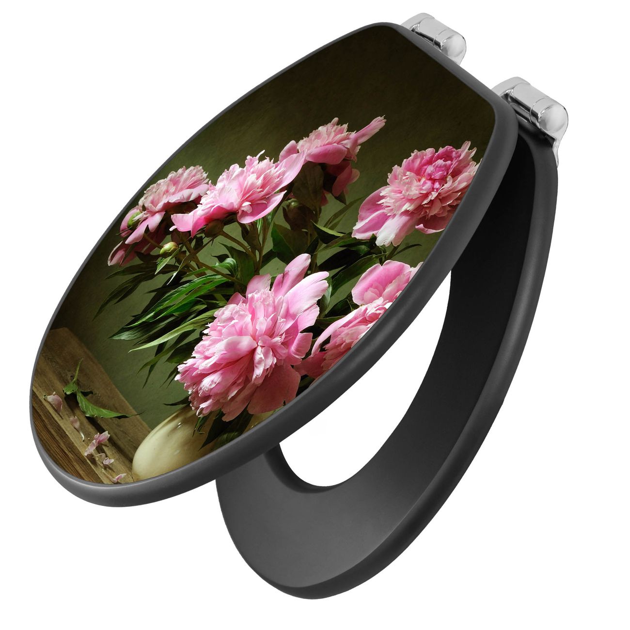 WC Sitz Anthrazit mit Absenkautomatik Motiv Pinke Pfingstrosen