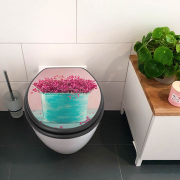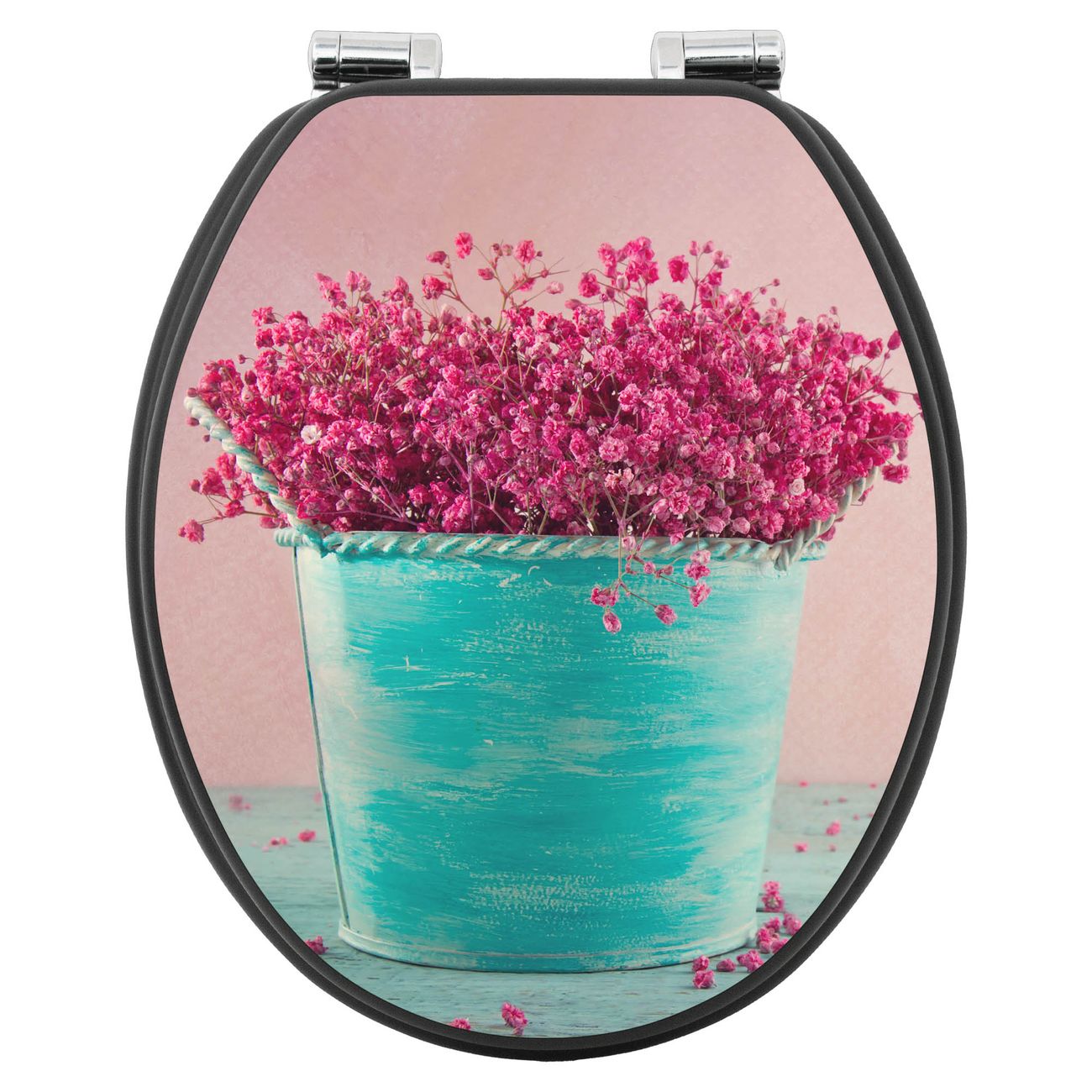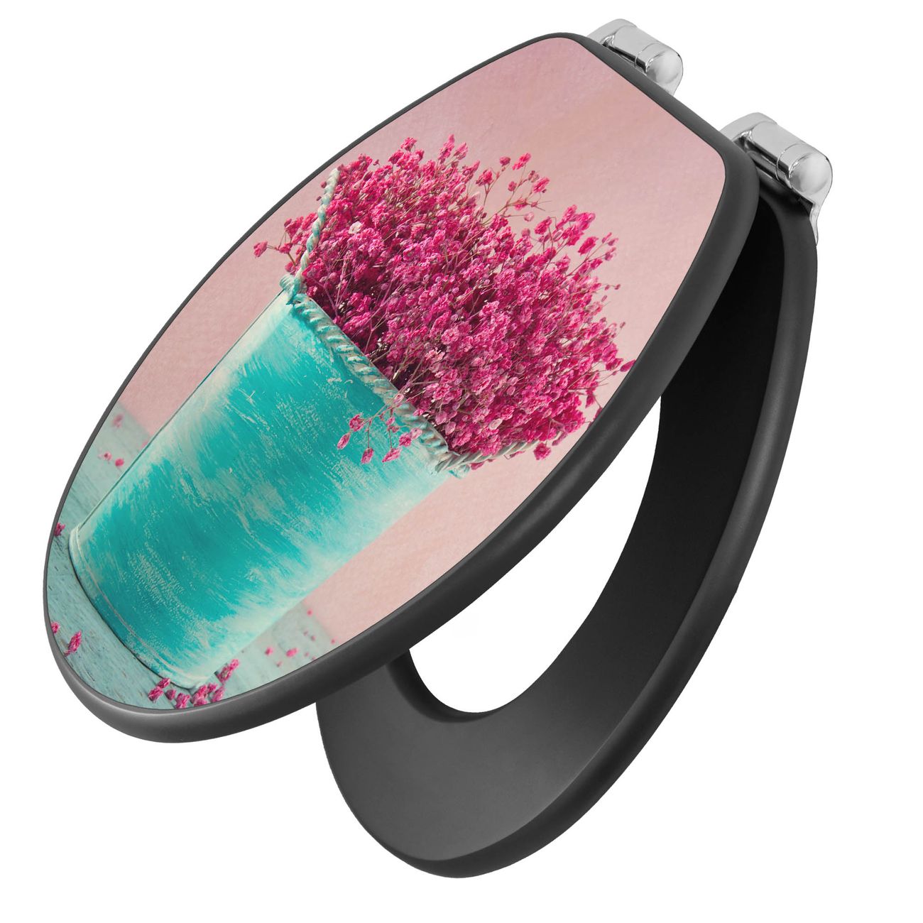 WC Sitz Anthrazit mit Absenkautomatik Motiv Pinke Trockenblumen
