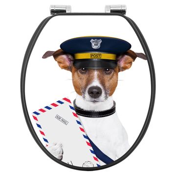 WC Sitz Anthrazit mit Absenkautomatik Motiv Postbote Jack Russel