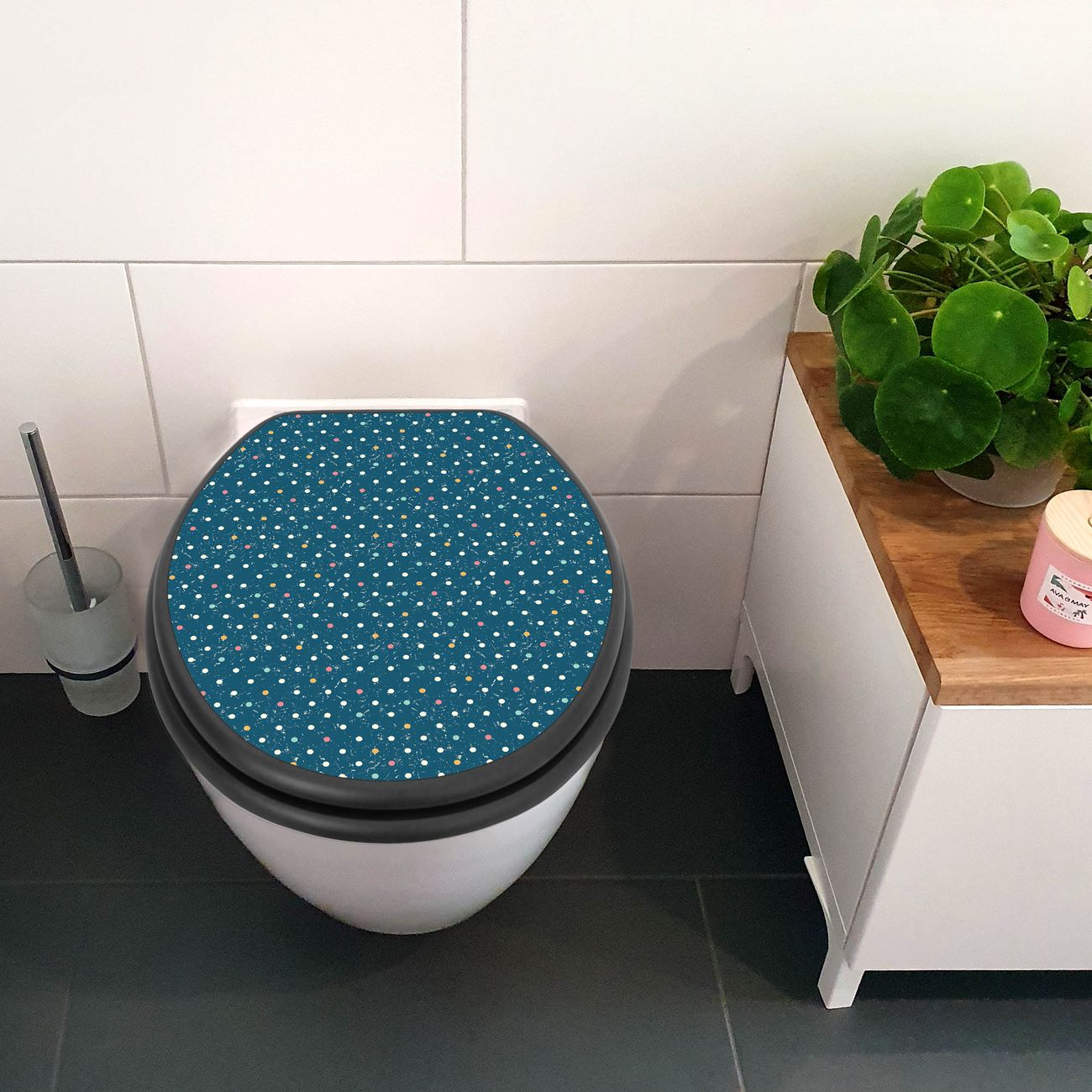 WC Sitz Anthrazit mit Absenkautomatik Motiv Punkte auf Blau