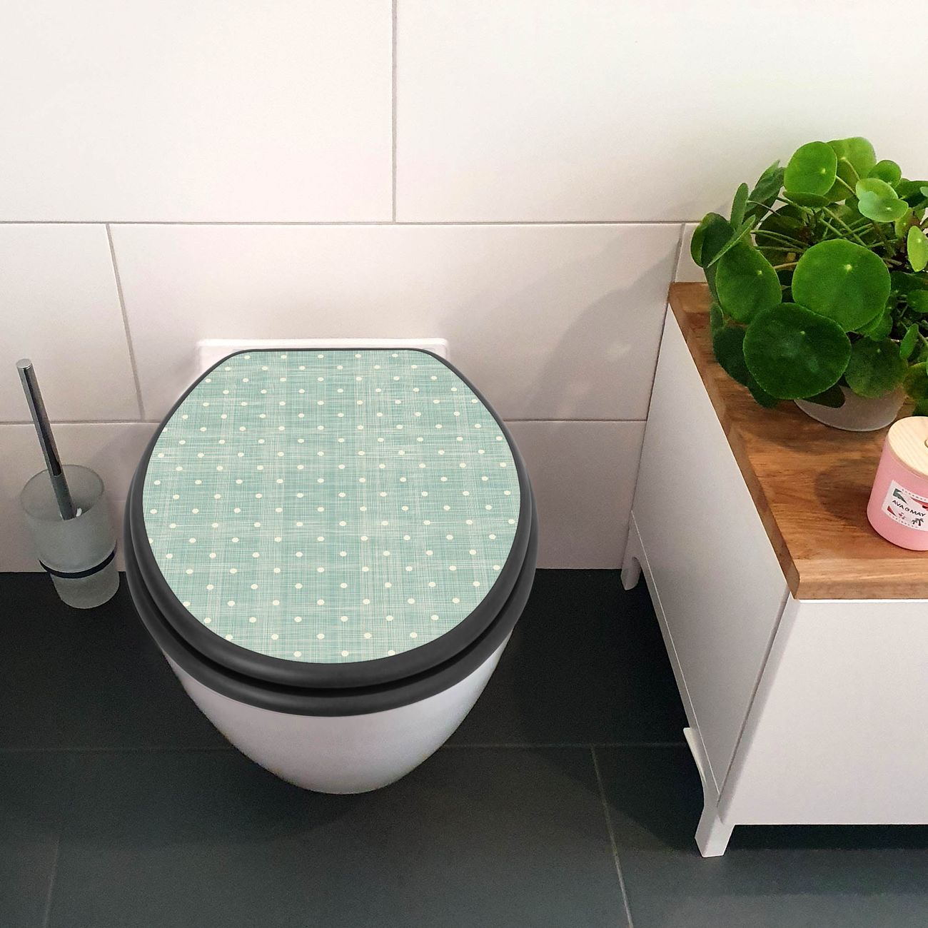 WC Sitz Anthrazit mit Absenkautomatik Motiv Punkte Lindgrün