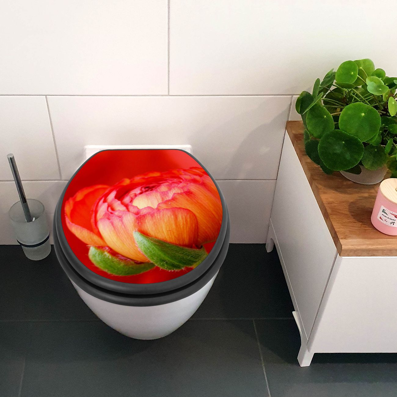 WC Sitz Anthrazit mit Absenkautomatik Motiv Ranunkel