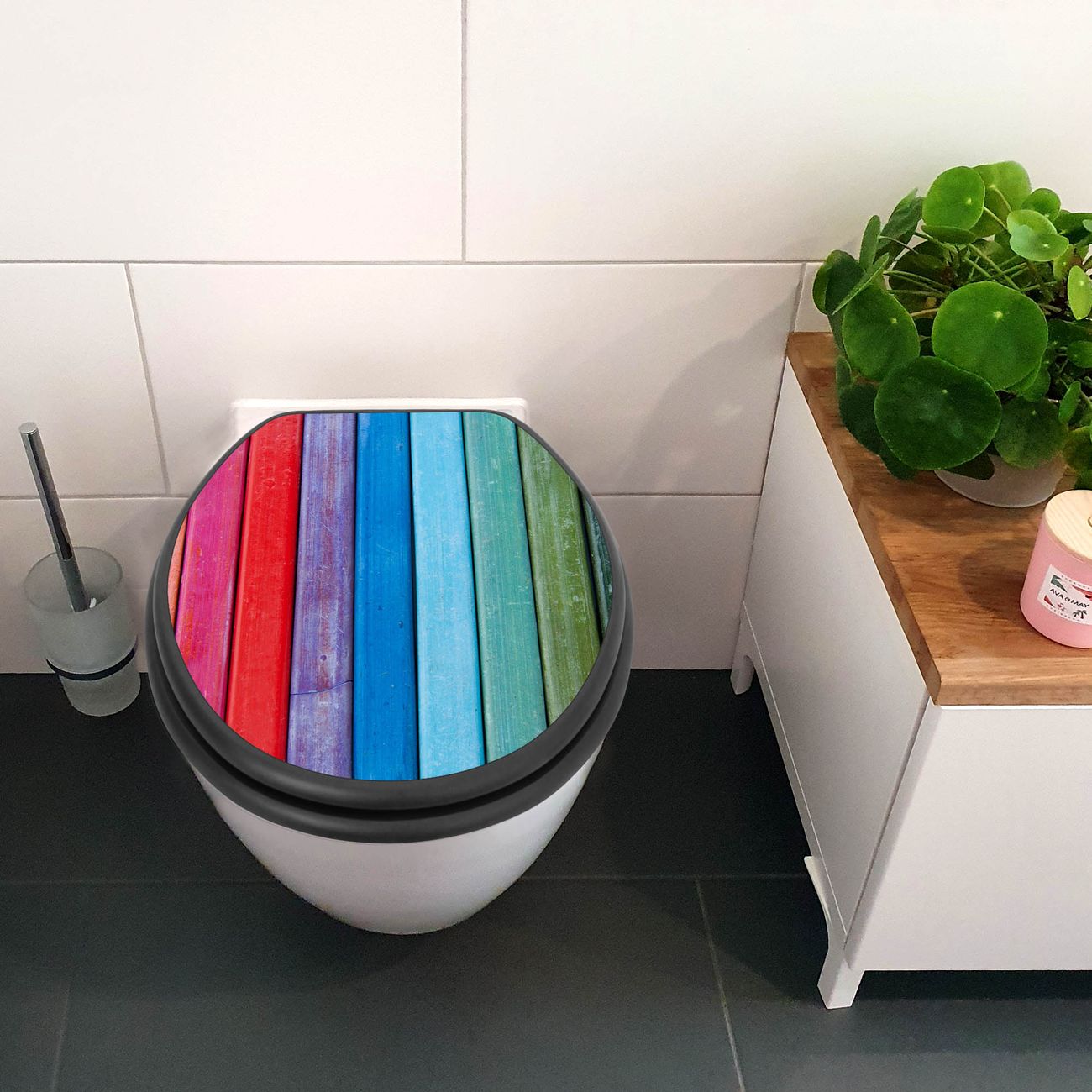 WC Sitz Anthrazit mit Absenkautomatik Motiv Regenbogenfarben