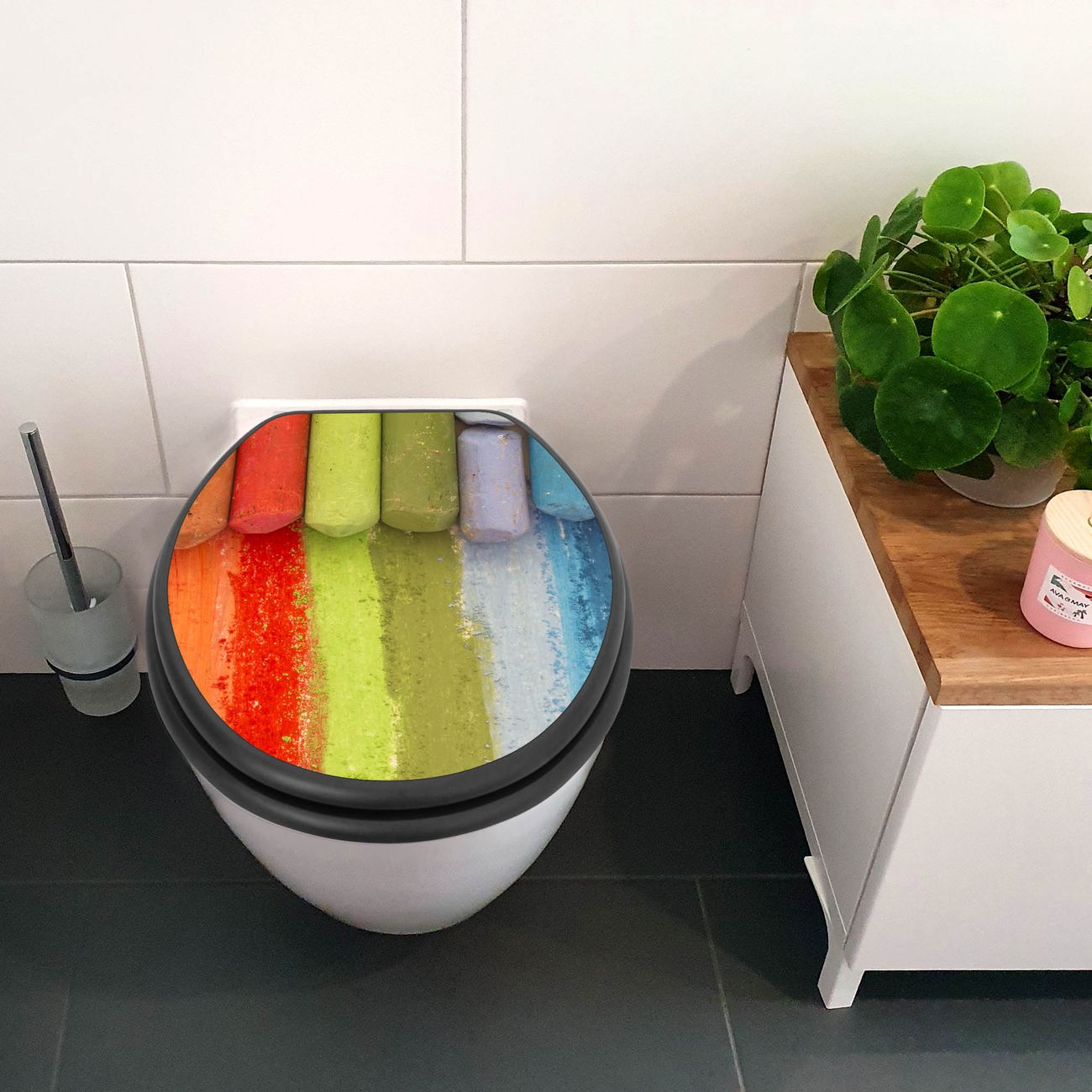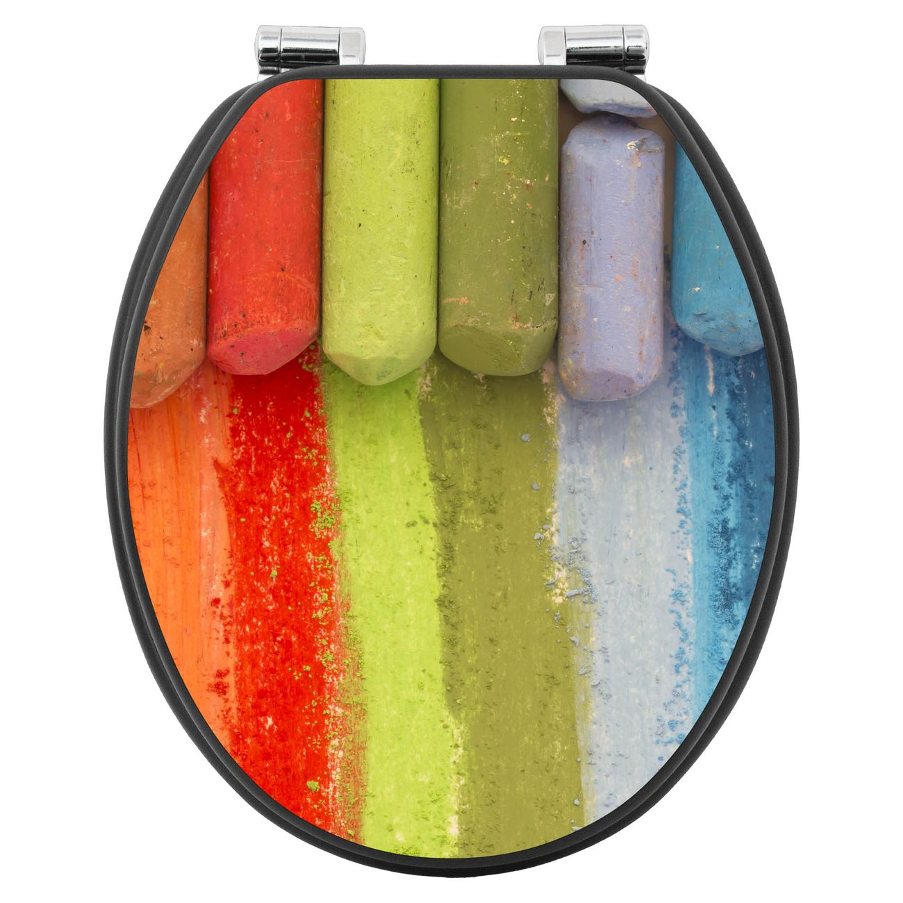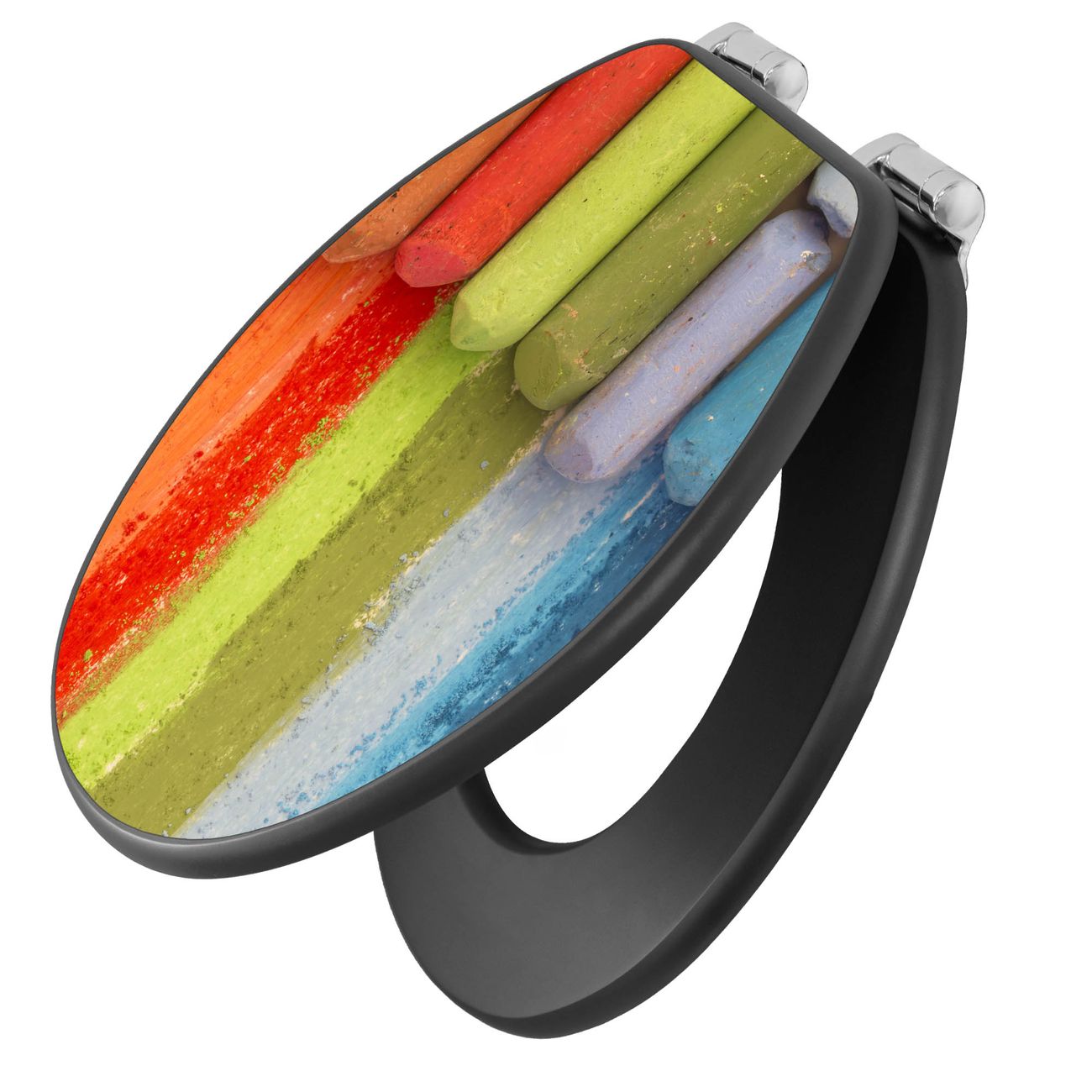 WC Sitz Anthrazit mit Absenkautomatik Motiv Regenbogenkreide