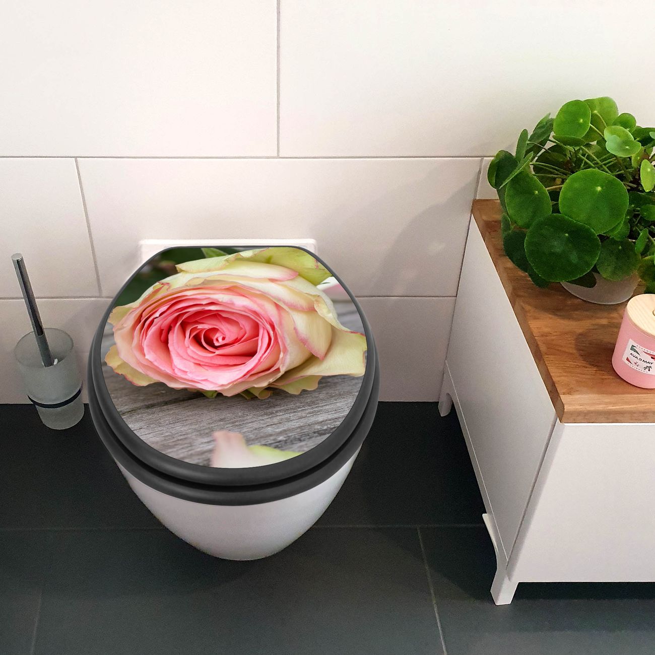 WC Sitz Anthrazit mit Absenkautomatik Motiv Rosa Rose