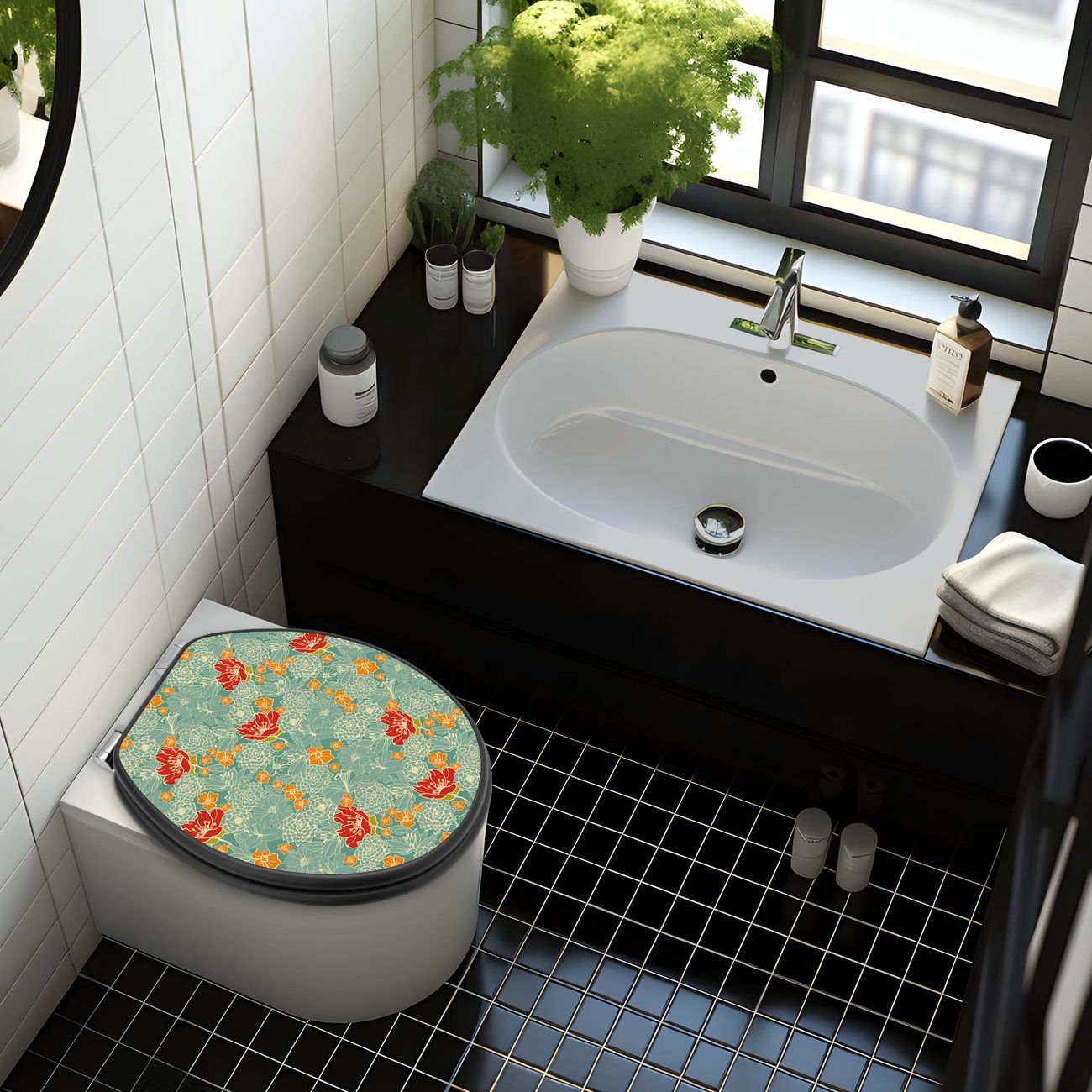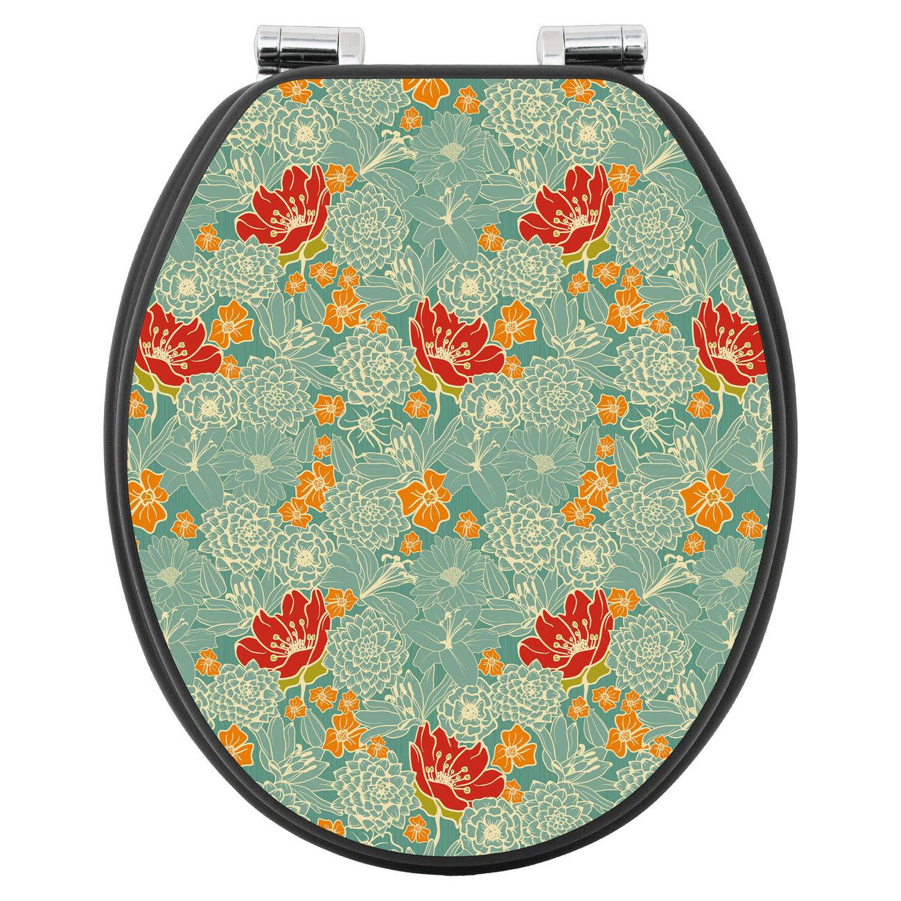 WC Sitz Anthrazit mit Absenkautomatik Motiv Rote Blumen