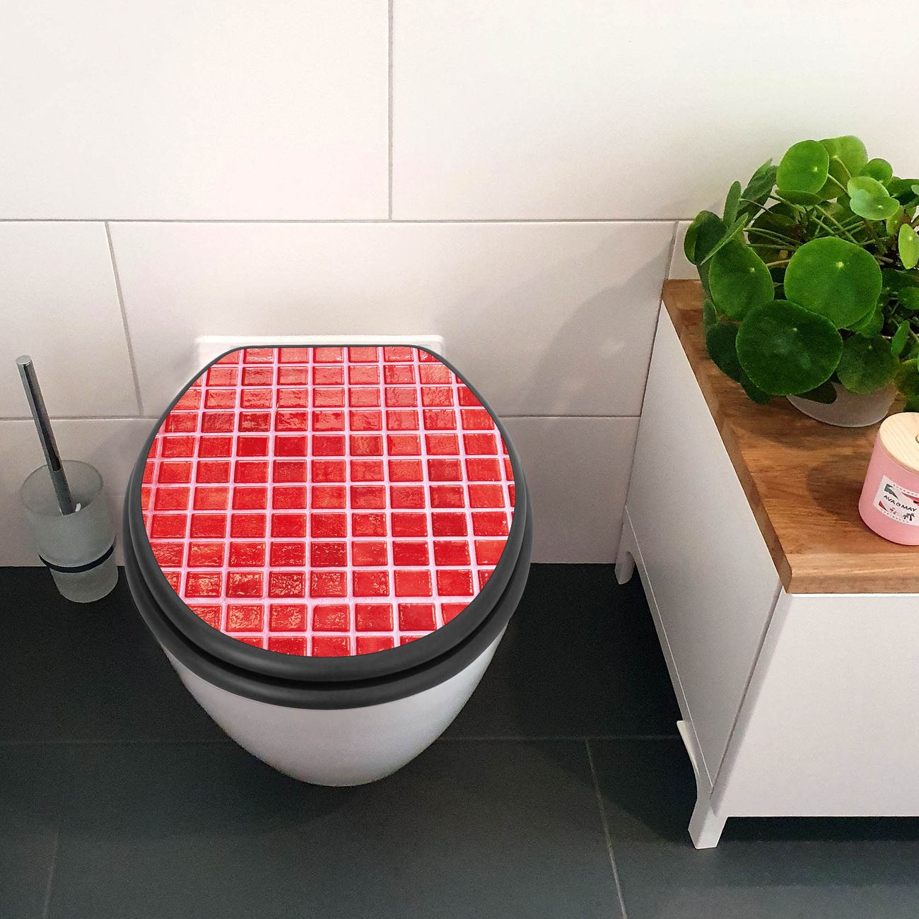 WC Sitz Anthrazit mit Absenkautomatik Motiv Rote Kacheln