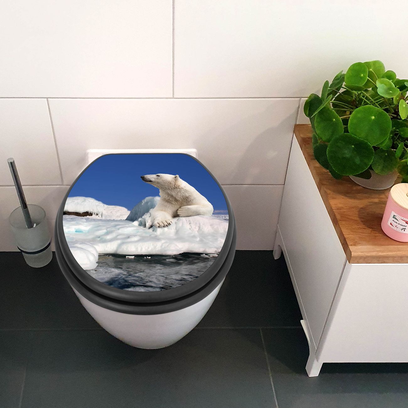 WC Sitz Anthrazit mit Absenkautomatik Motiv Ruhender Eisbär