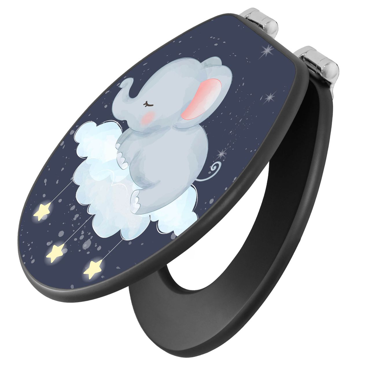 WC Sitz Anthrazit mit Absenkautomatik Motiv schlafender Elefant