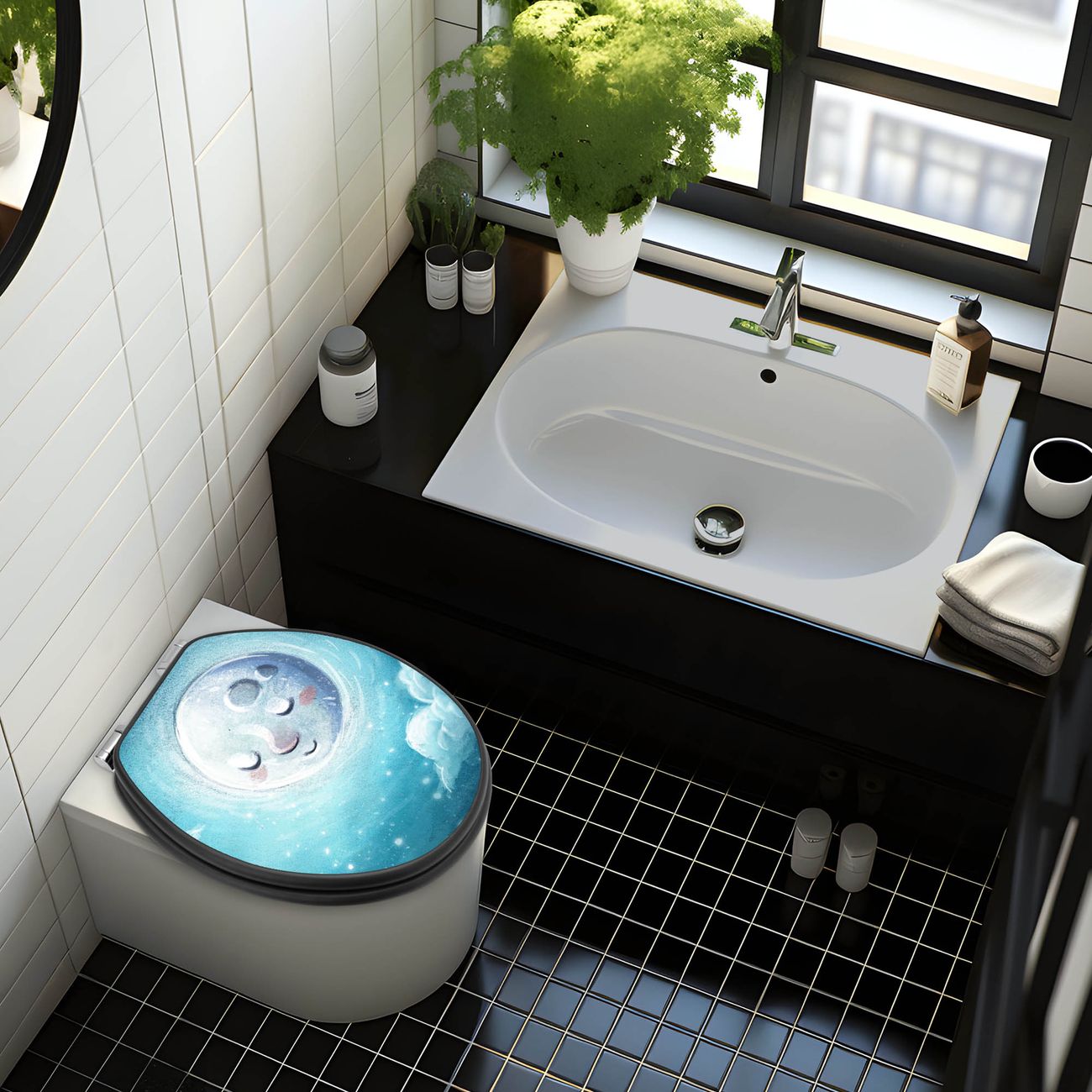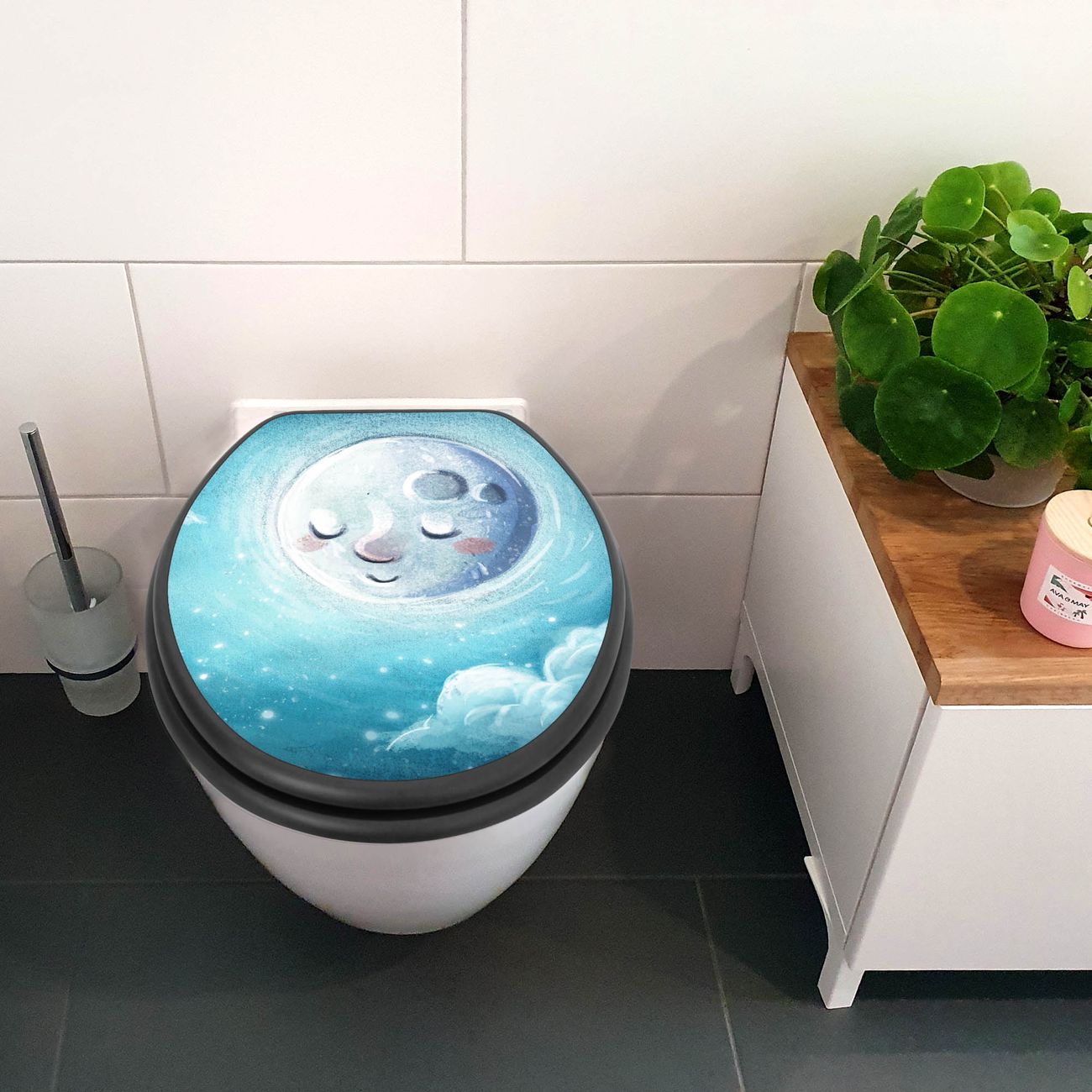 WC Sitz Anthrazit mit Absenkautomatik Motiv schlafender Mond
