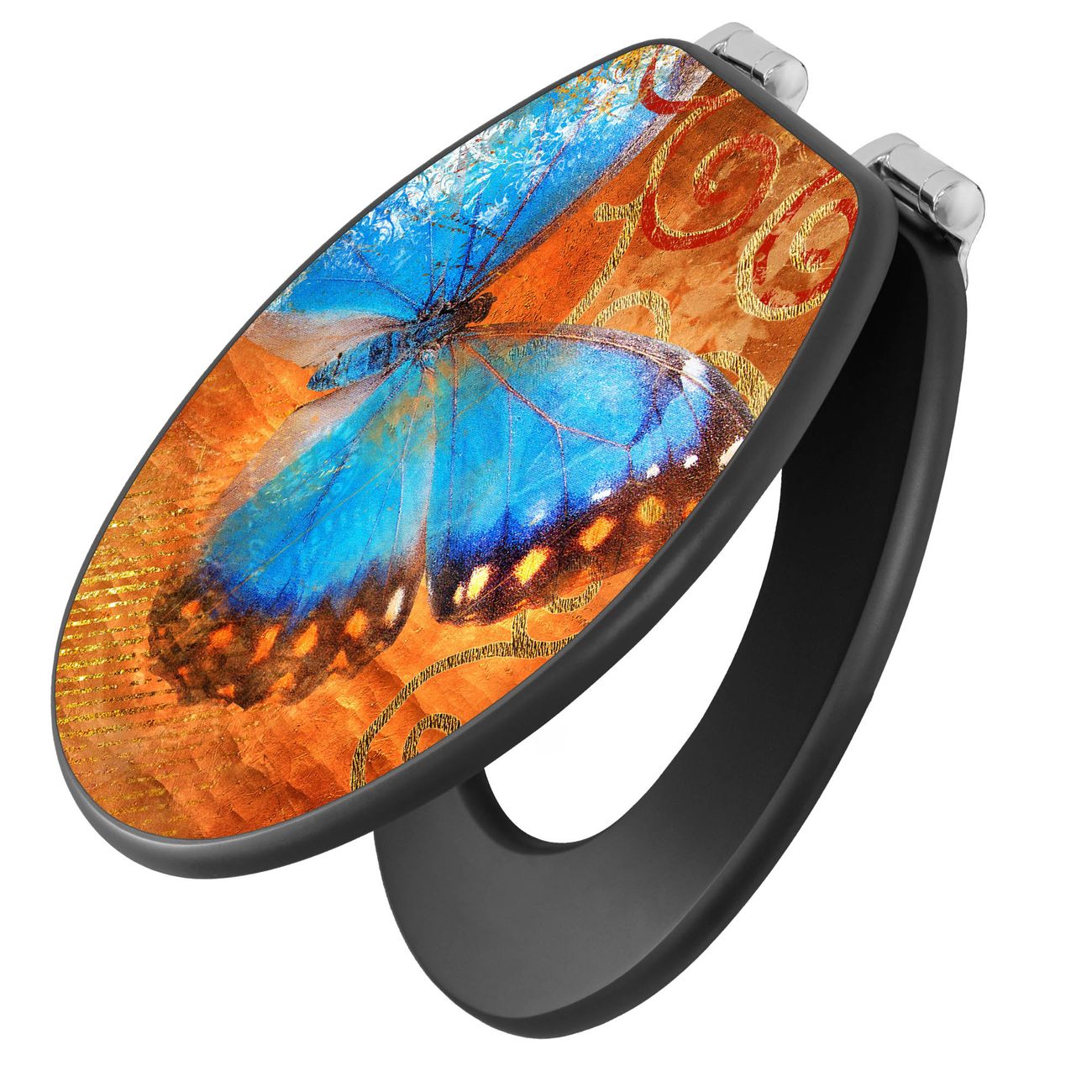 WC Sitz Anthrazit mit Absenkautomatik Motiv Schmetterling