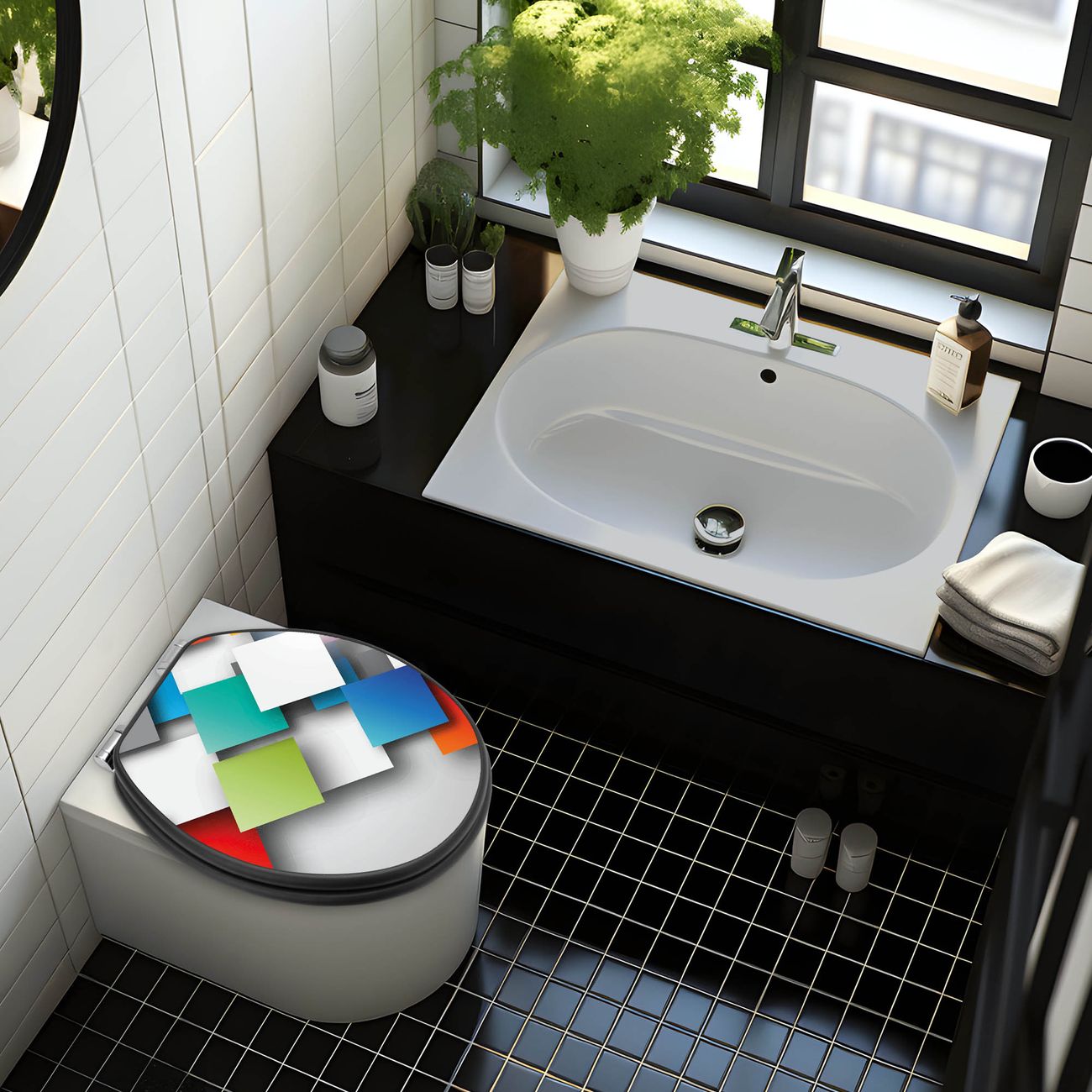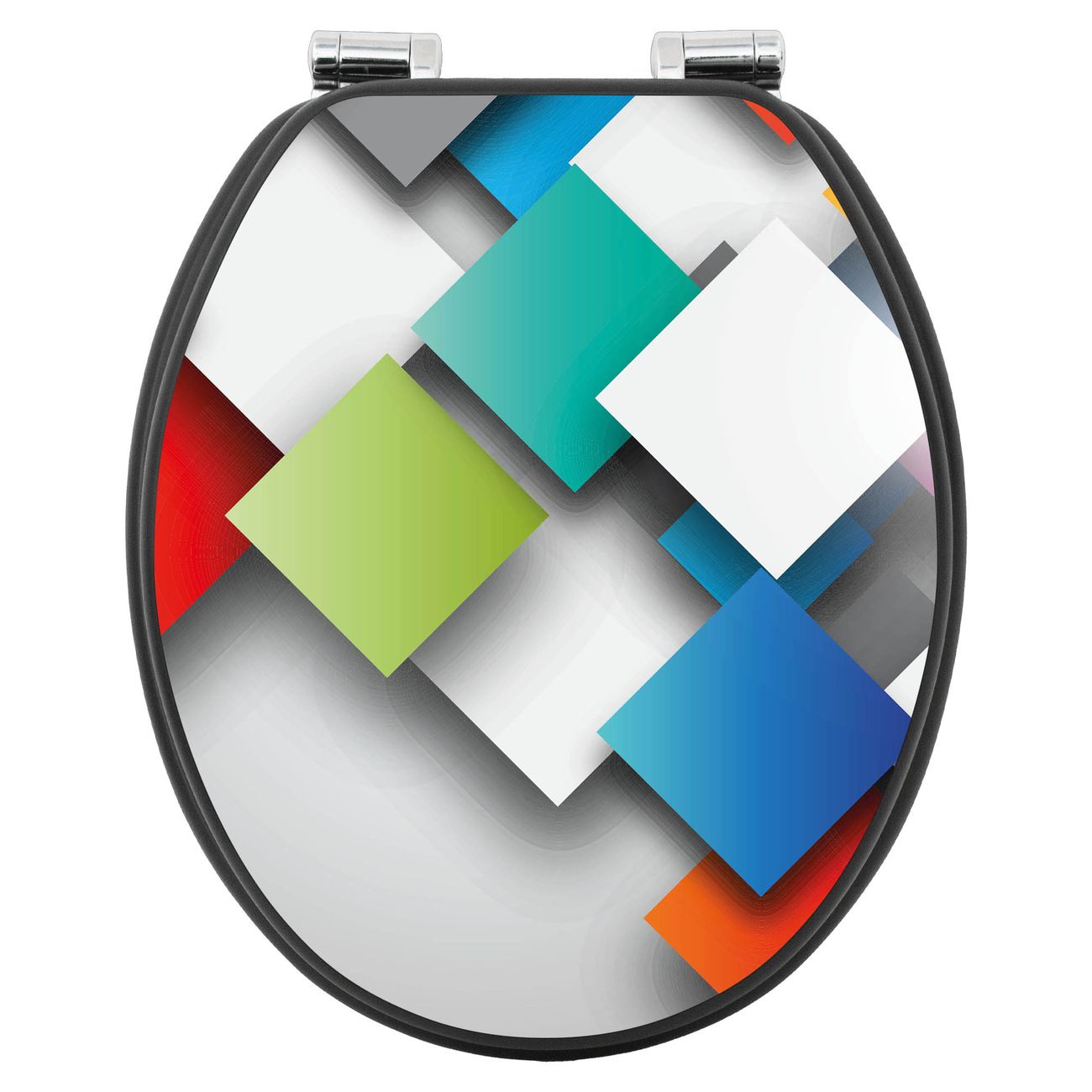 WC Sitz Anthrazit mit Absenkautomatik Motiv Schwebende Quadrate
