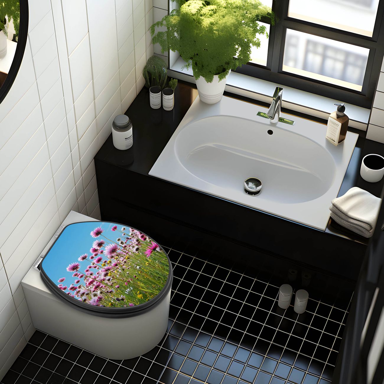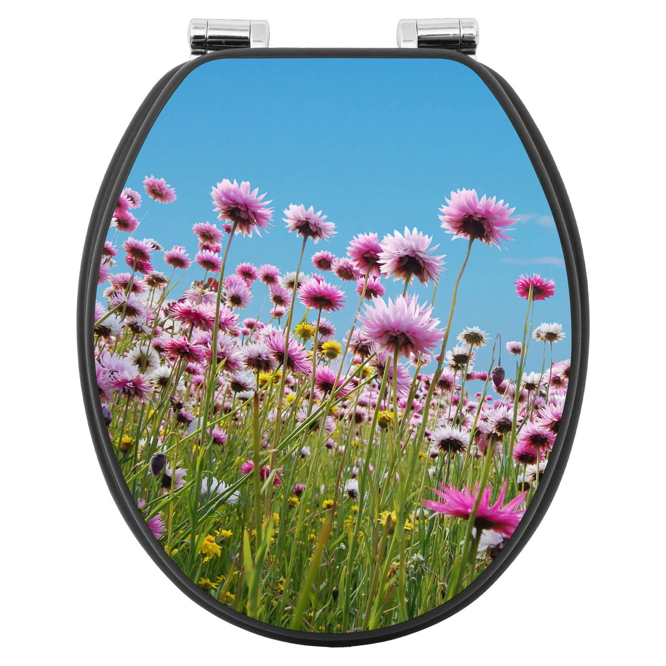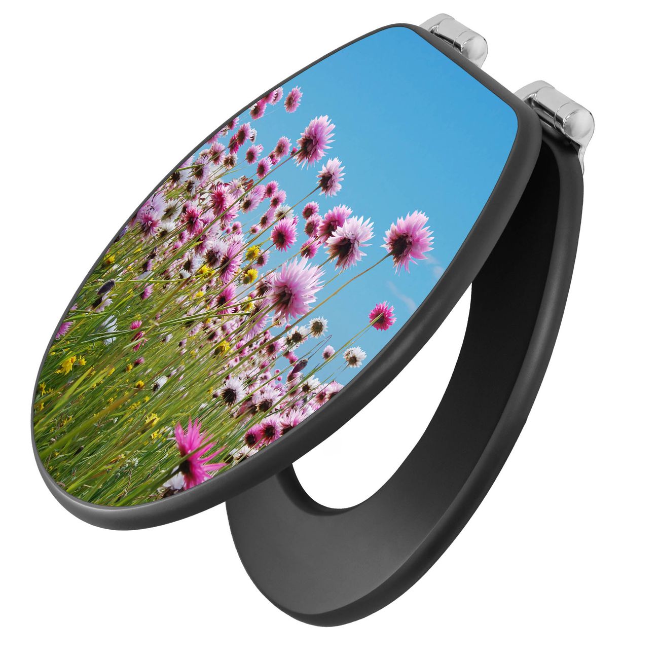 WC Sitz Anthrazit mit Absenkautomatik Motiv Sommerblumen
