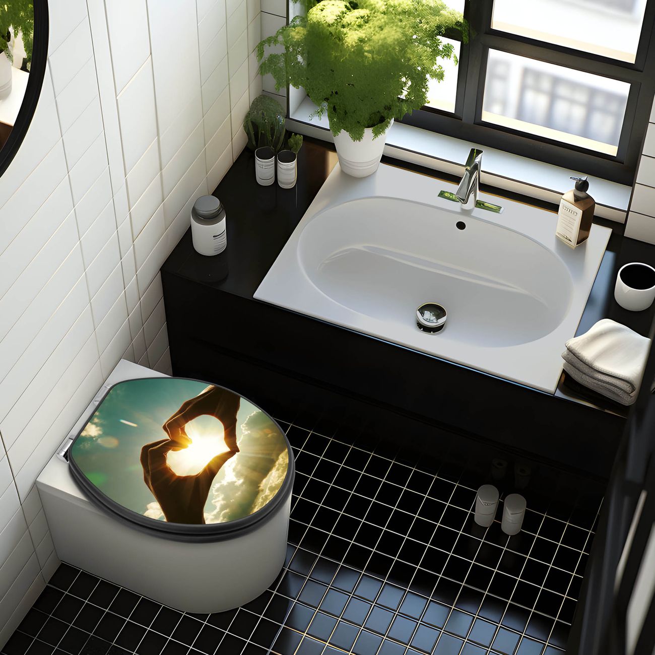 WC Sitz Anthrazit mit Absenkautomatik Motiv Sonne im Herzen