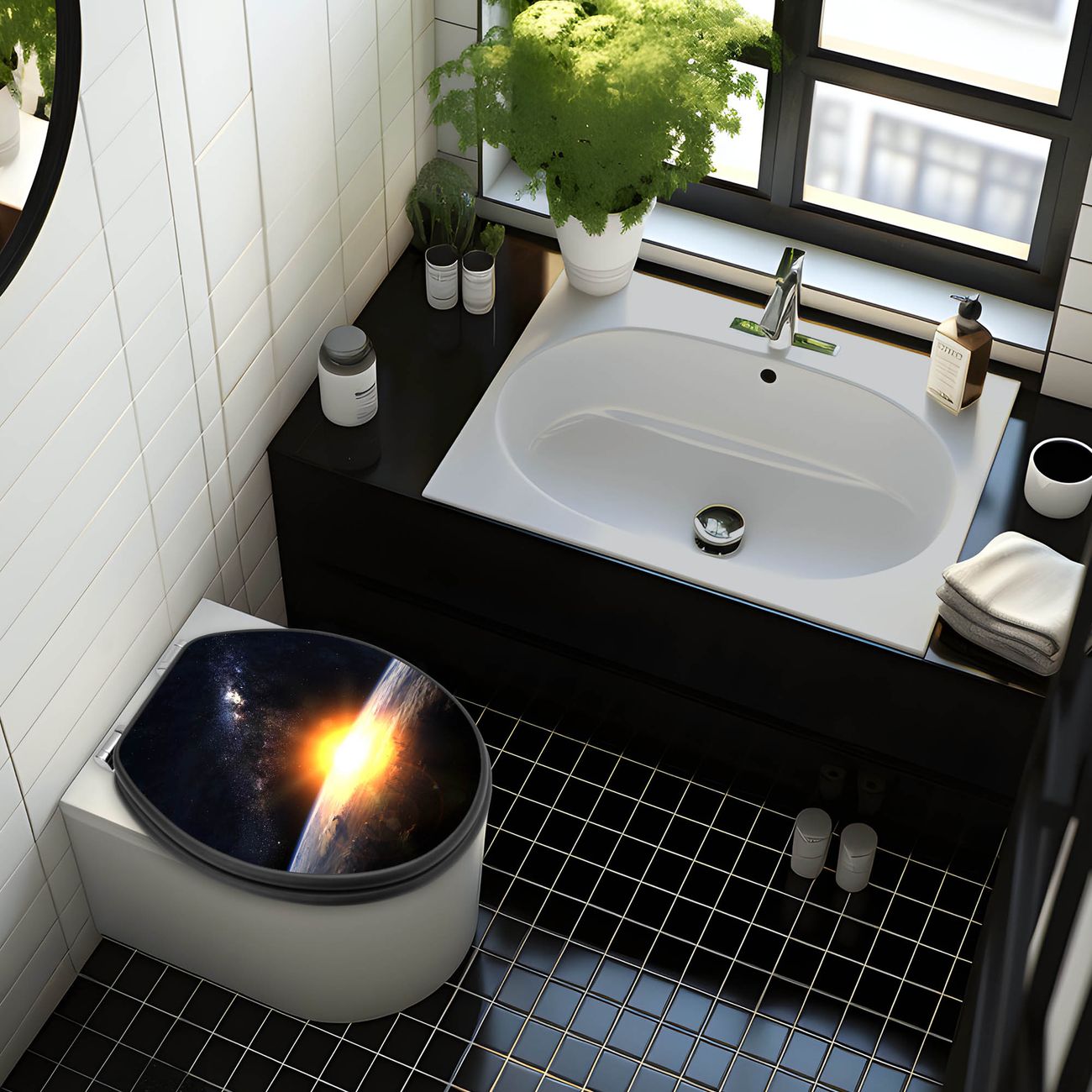 WC Sitz Anthrazit mit Absenkautomatik Motiv Sonne im Weltall