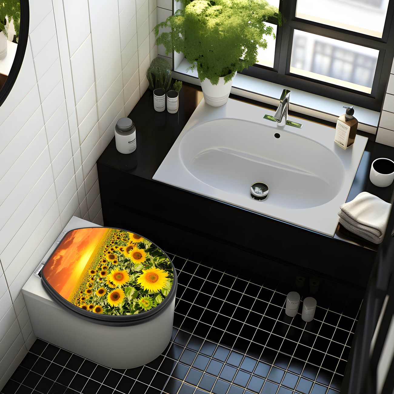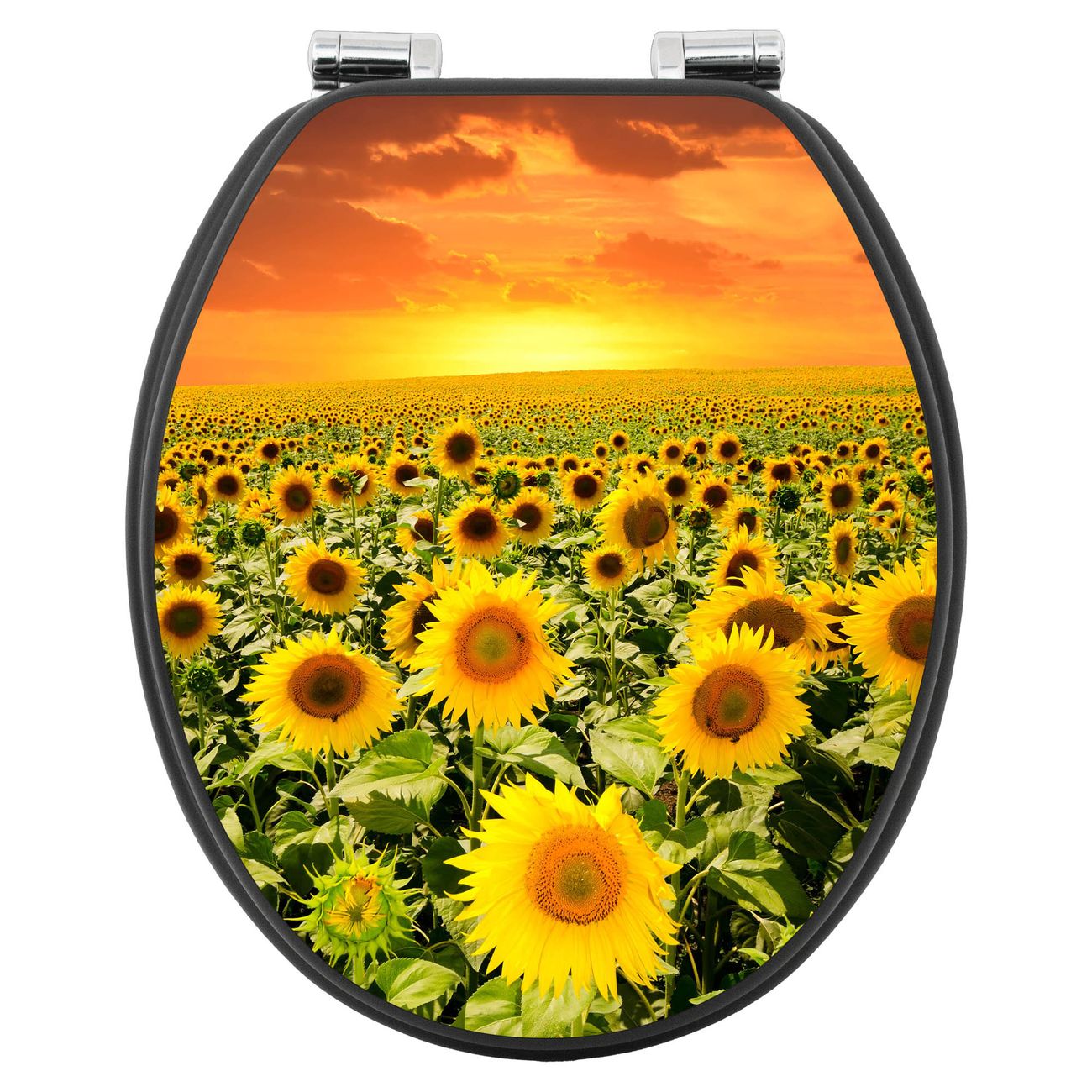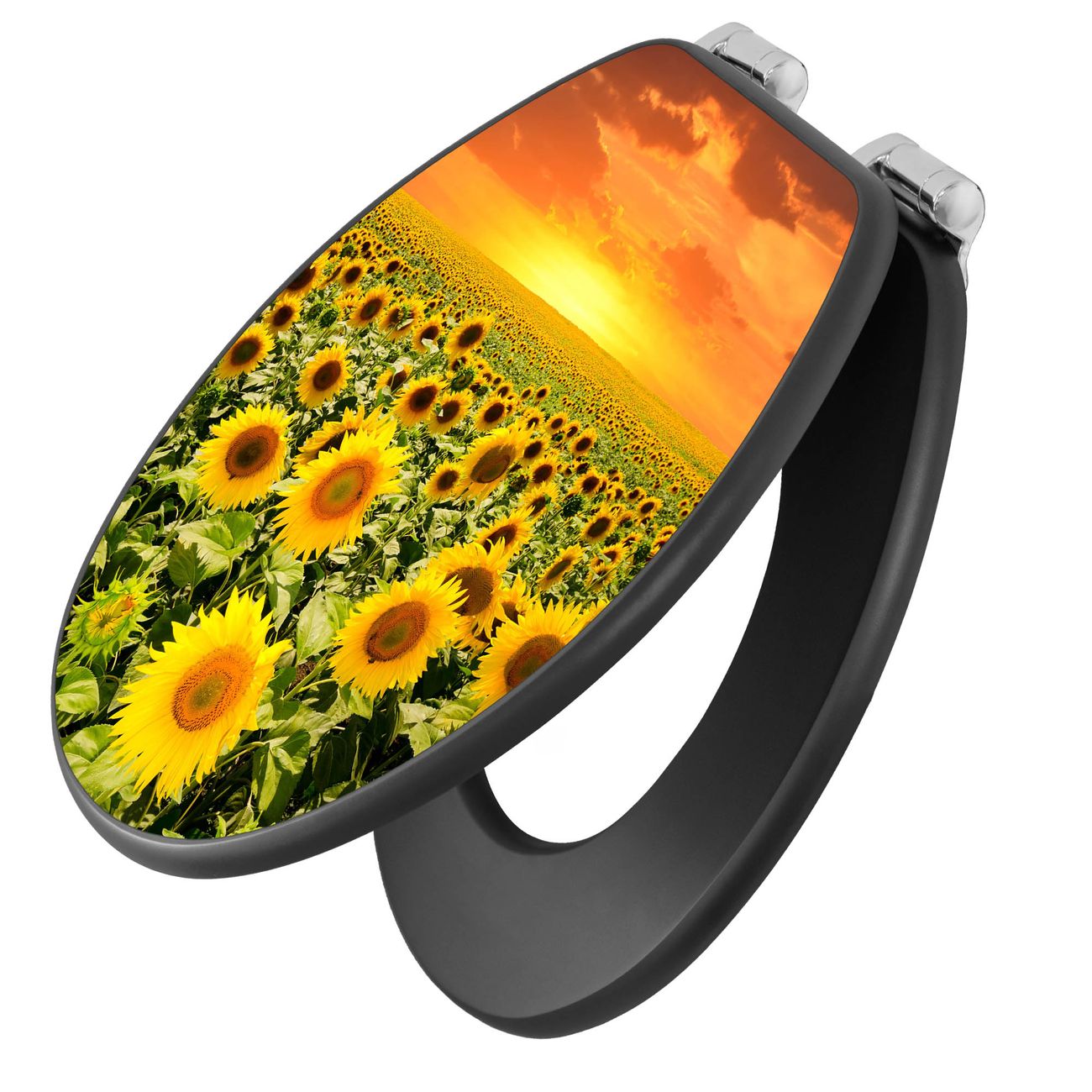 WC Sitz Anthrazit mit Absenkautomatik Motiv Sonnenblumenmeer