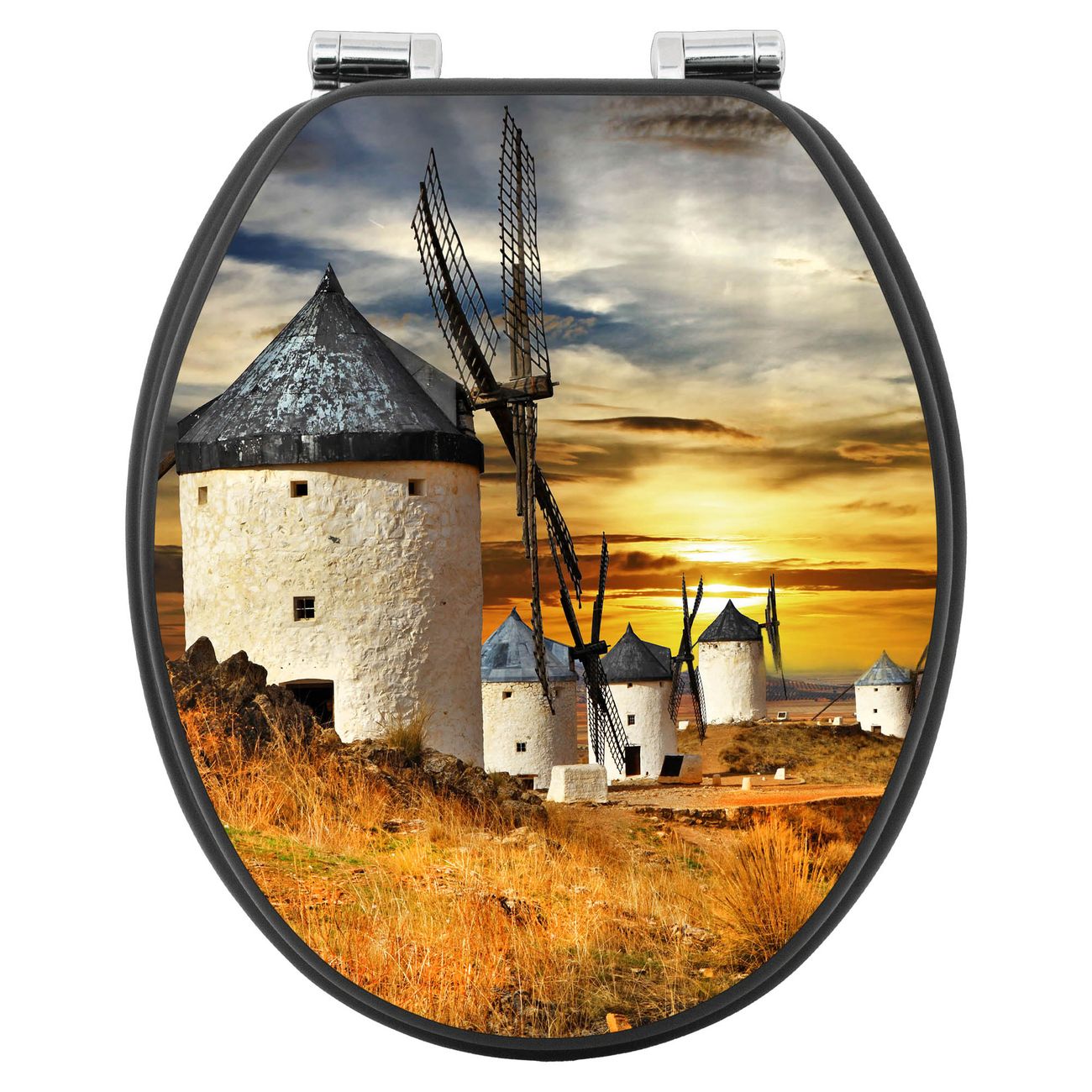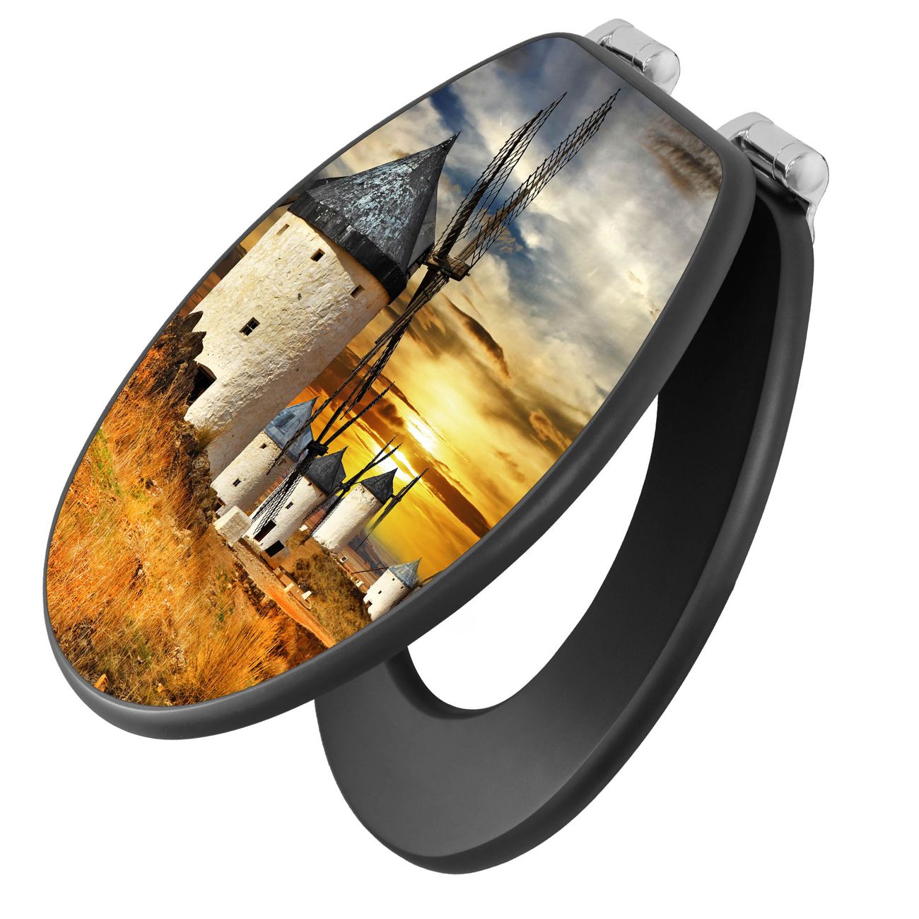 WC Sitz Anthrazit mit Absenkautomatik Motiv Spanische Windmühlen
