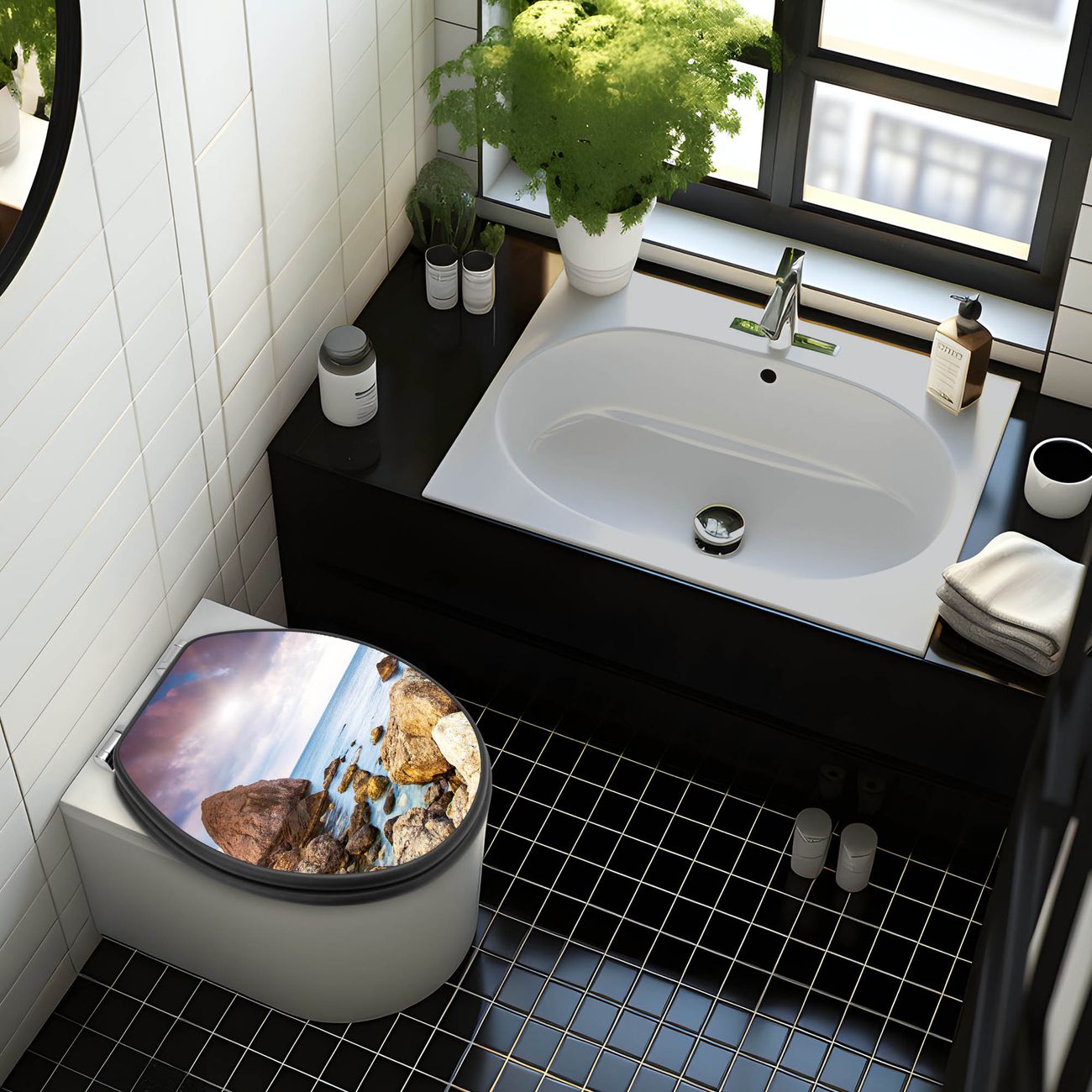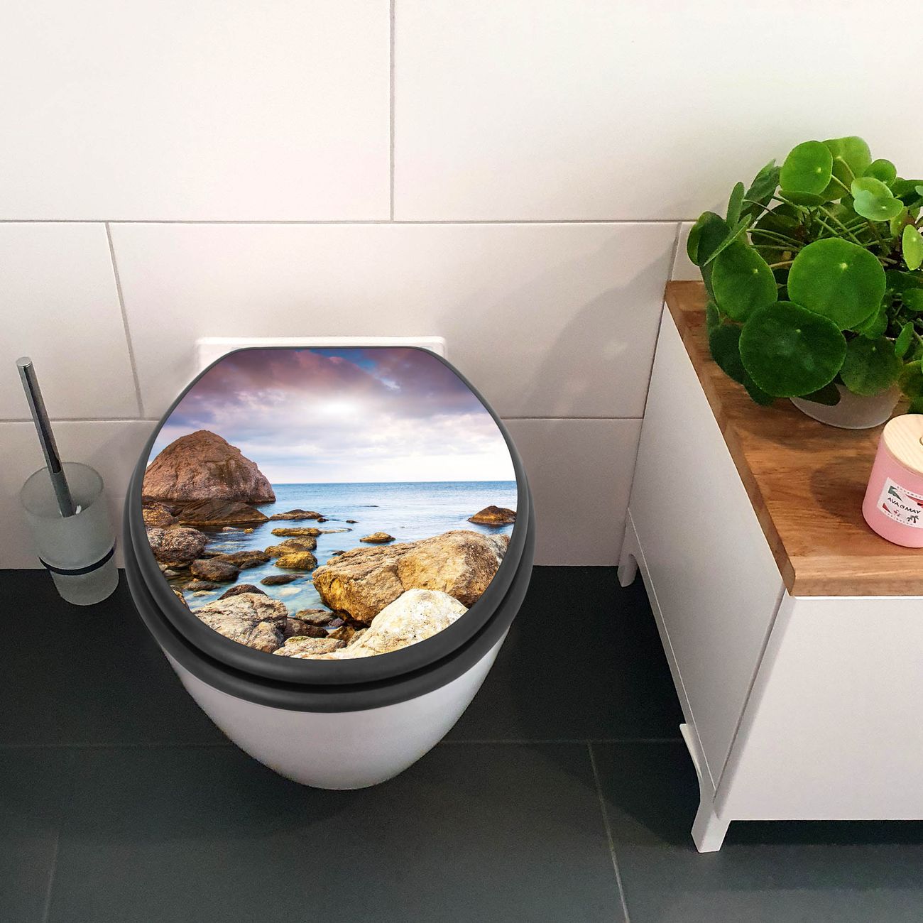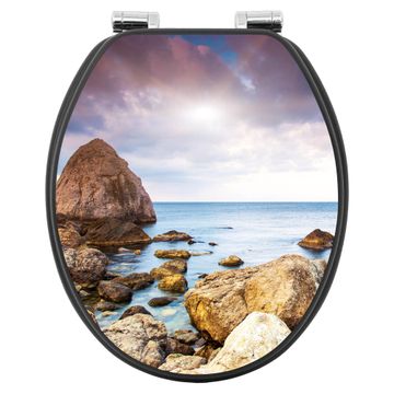 WC Sitz Anthrazit mit Absenkautomatik Motiv Steinbucht